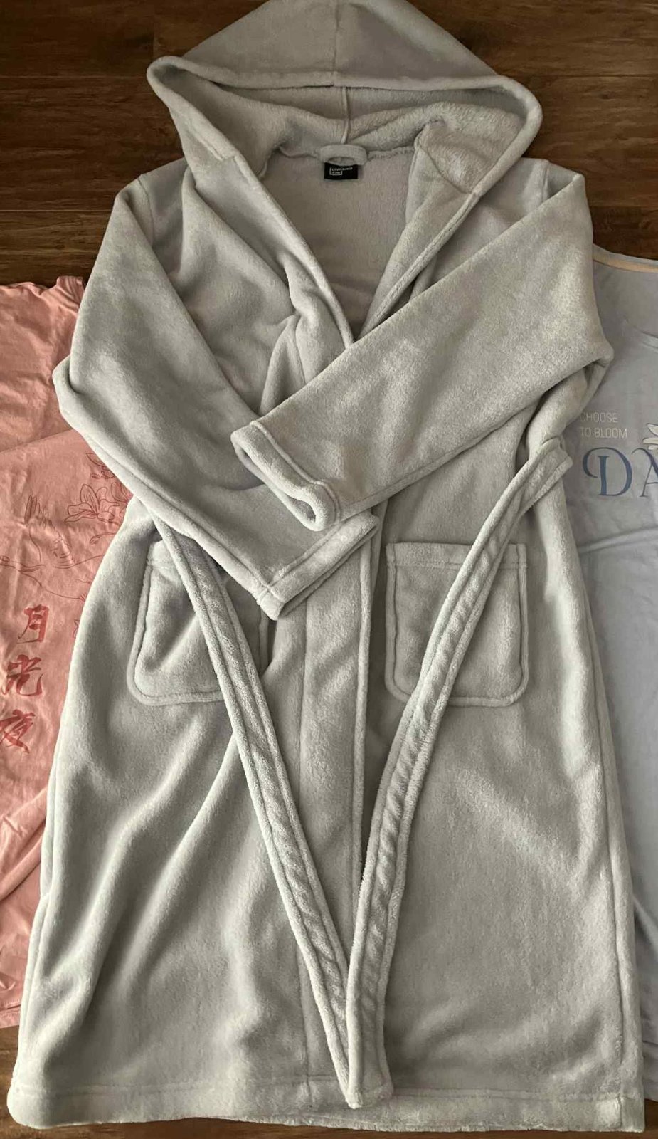 Krásny župan Bez poškodení Vzatý len 1x . Ako nový Velkost L Dĺžka je 106cm Dĺžka rukavu od pleca 57cm