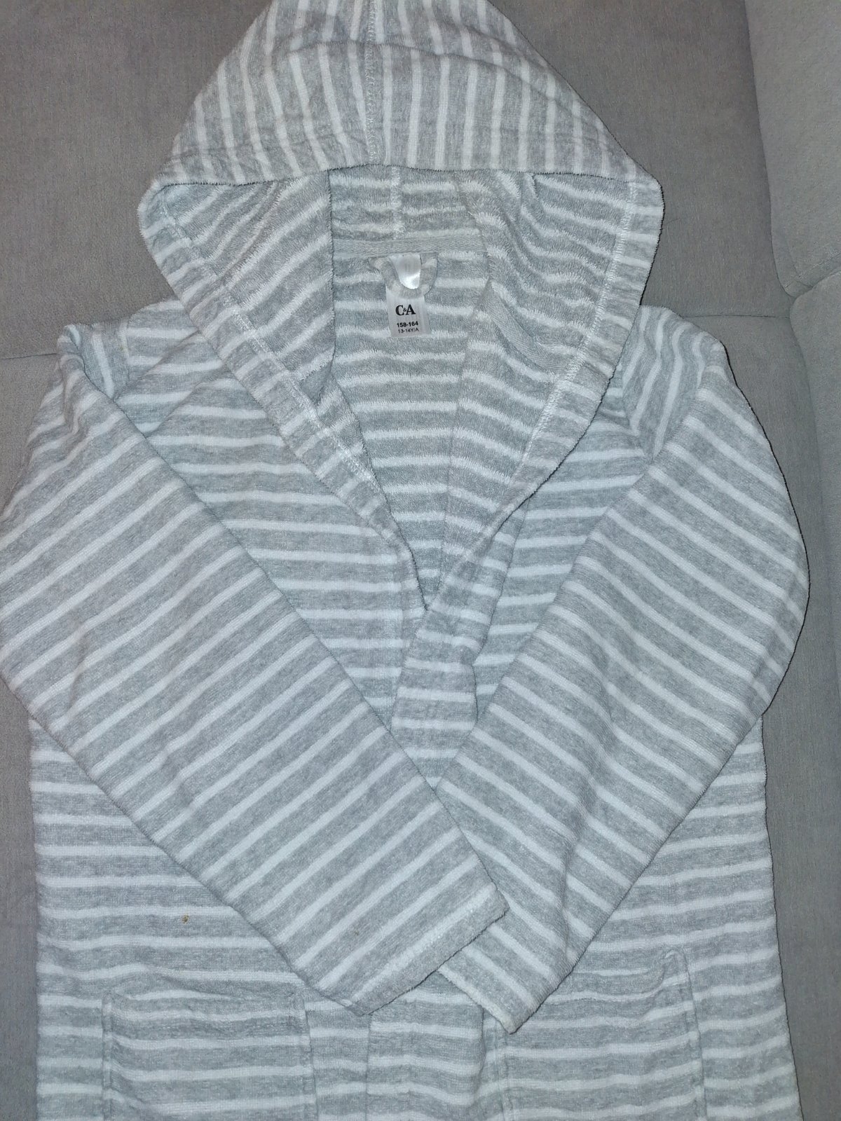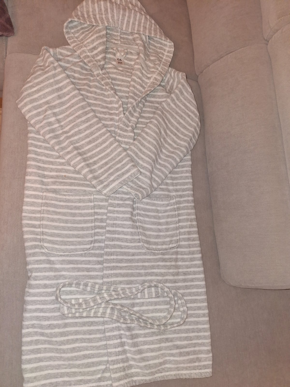 krásny, hrejivý župan bez poškodení, veľkosť odhadom, štítok s veľkosťou je odstrihnutý, rozmery dĺžka: 55 cm rukáv od krku: 62 cm