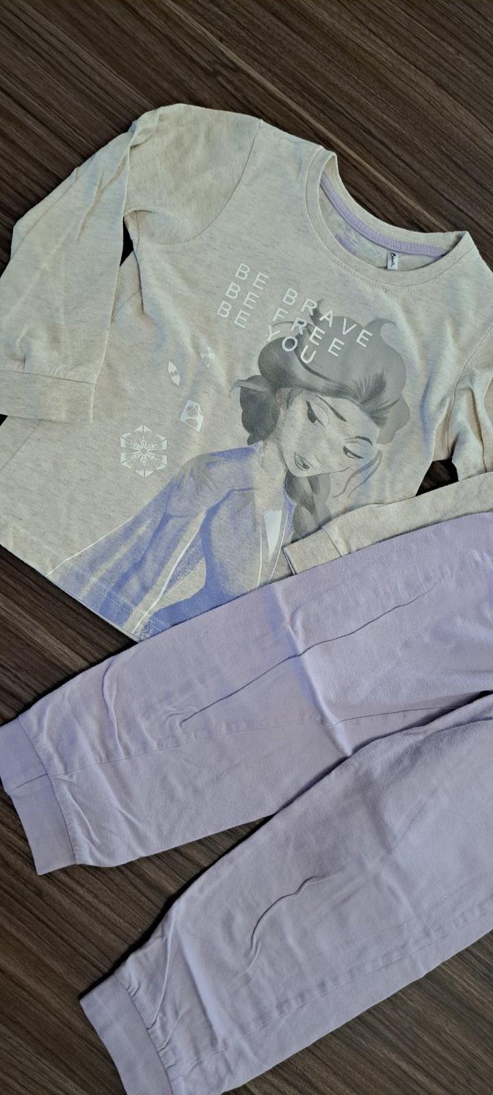 Detské bavlnené pyžamo. Pyžamo tvorí tričko s dlhým rukávom a dlhé nohavice. Tričko zdobí potlač obrázku. Jednofarebné dlhé nohavice majú v páse gumu a sú ukončené elastickými lemami. Bavlnený mat...