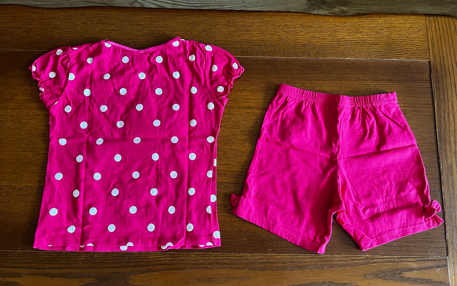 Top stav, dvakrát oblečené na striedačku s ďalšími deviatimi letnými pyžamkami. Bez žmolkov či poškodení.