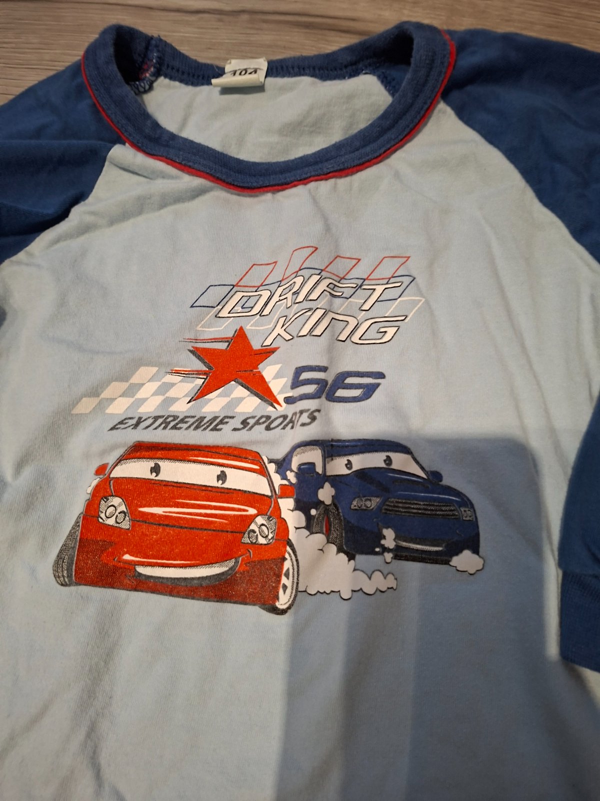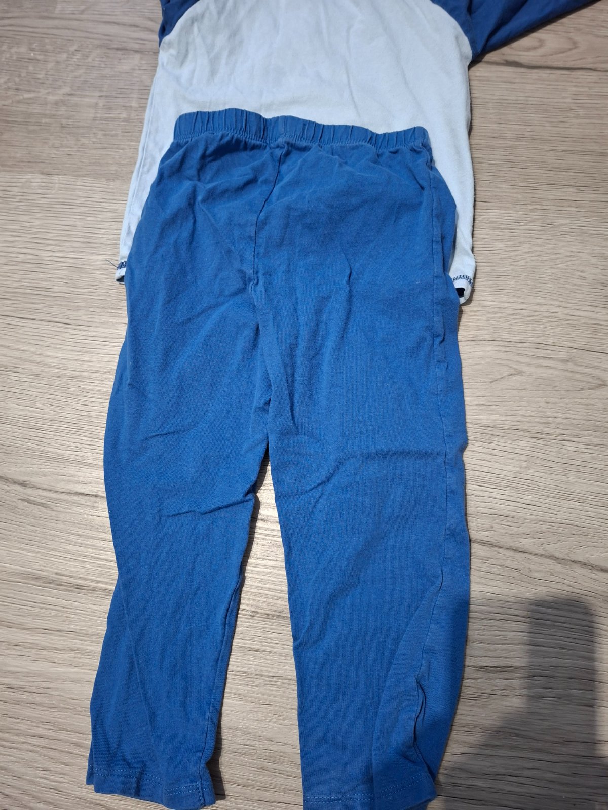 Modré pyzamo je v dobrom stave. Na aplikacii a golieriku vidno pranie. Ale stale je velmi pekne.