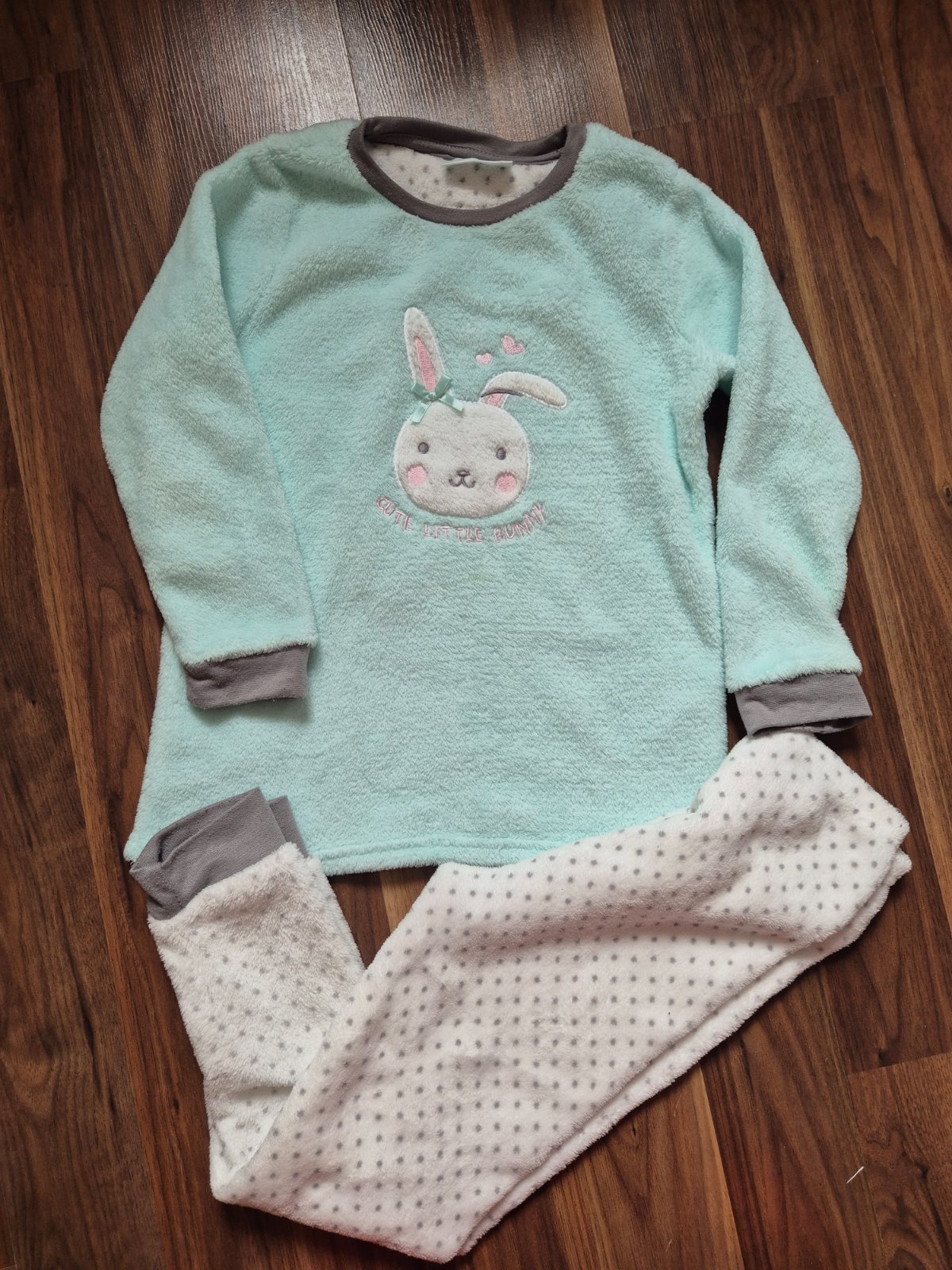 Pekne teplé pyžamo. Veľkosť 122/128. Minimum nosene, patenty jemné žmolky