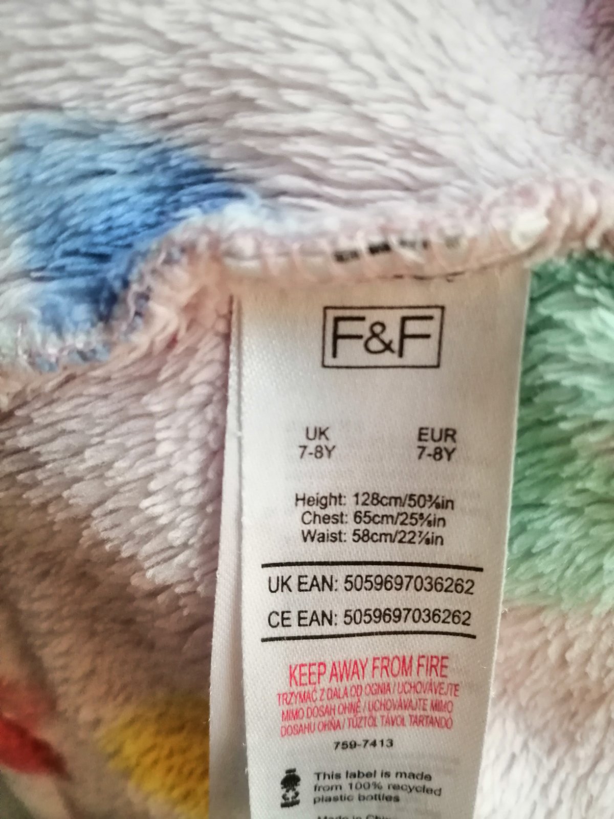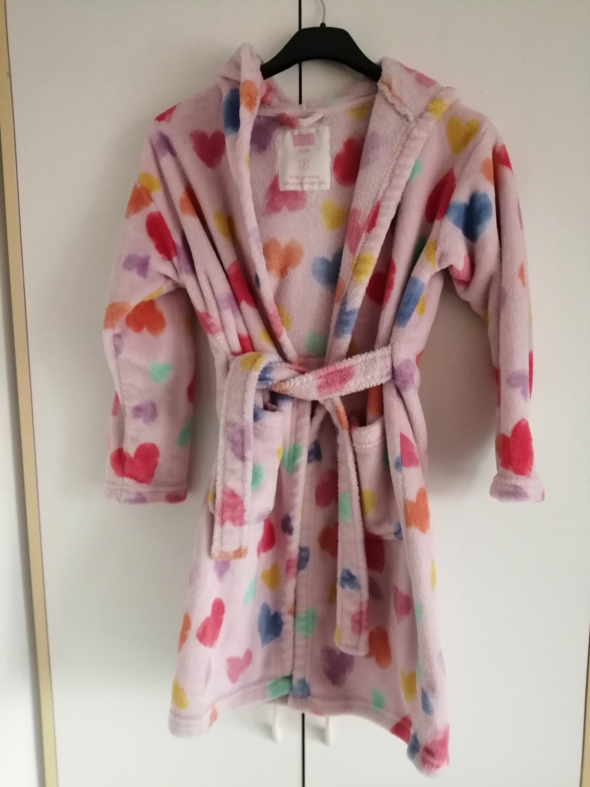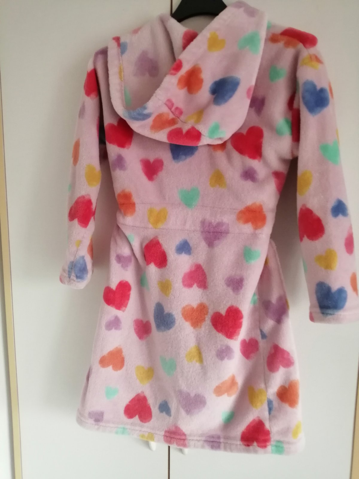 Krásny makkučky župan s jednorožcovymi motívmi na vačkoch. Velkost 128. Celková dĺžka 82cm. Sirka cez hrudnik 40cm, dĺžka rukaviku od krku 52cm.