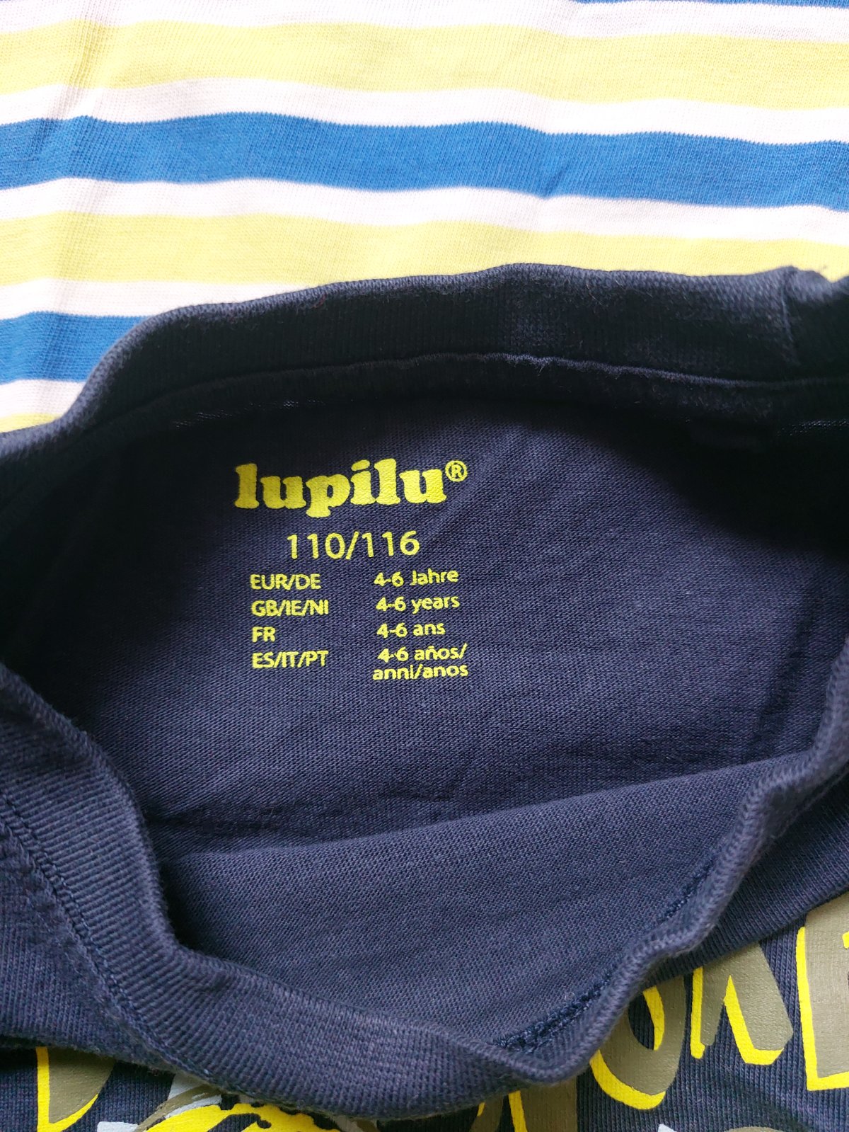 Dino ma veľkosť 110/116,ale je presne ako to pasikave,98/104,aj viemze bolo menšie, nesedi na veľkosť 110. Takze kategória 98😉