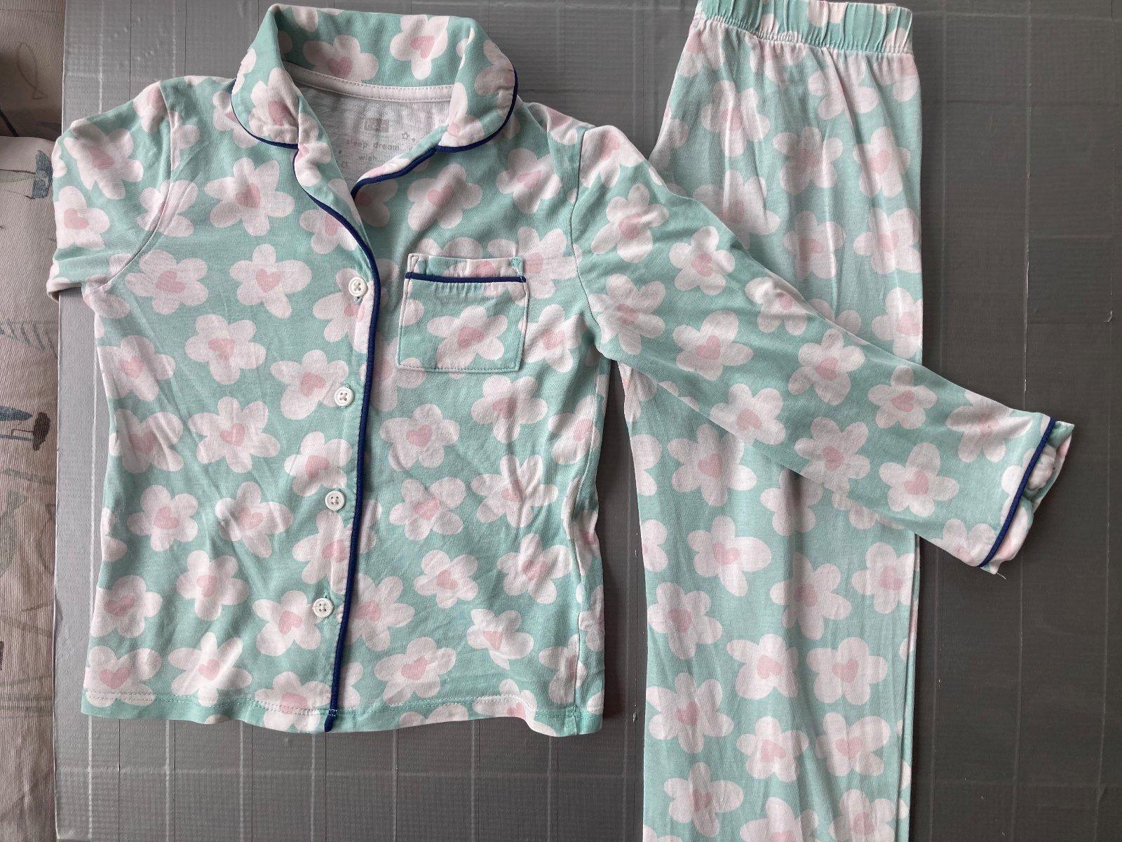 Prijemne dvojdielne pyzamko, zapinanie hornej casti na gombiky. Velkost 110, znacka F&F.