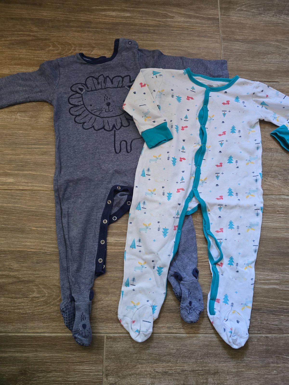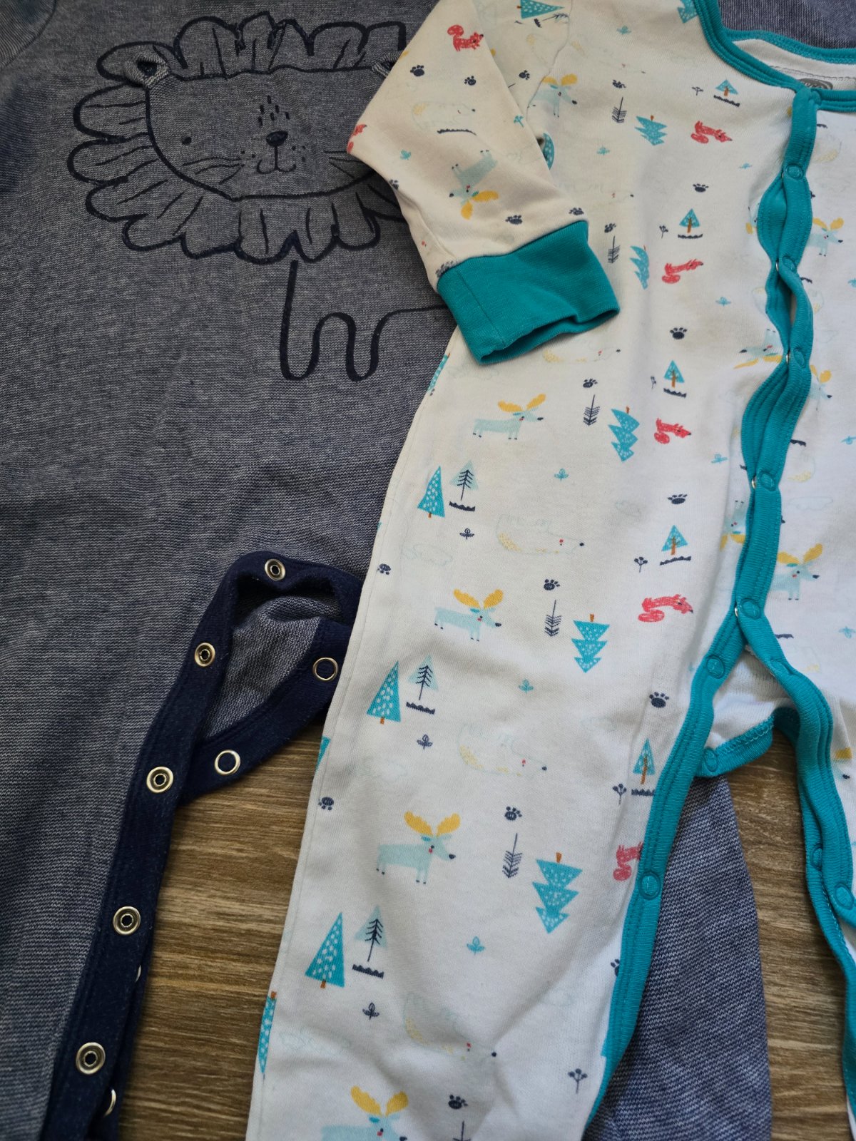 Kvalitne bavlnene pyzamka znacky next. Pasikave nosene viac viditelne minizmolky. Ostatne bez zmoliek ako nove akurat na dvoch pyzamkach malinke očká na nozke. Inak kvalitna bavlna. 3 ks, stvrte gr...