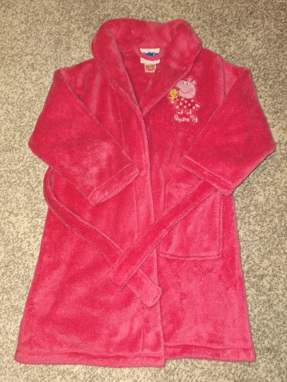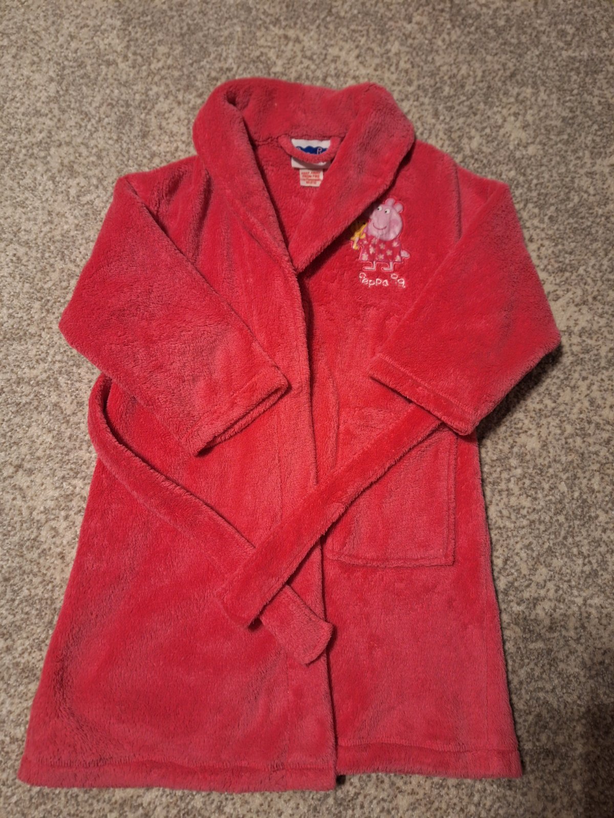 Teplý župan pre dievčatko Peppa Pig, viazanie je všité na župane, takže sa nestratí, má jeden vačok.