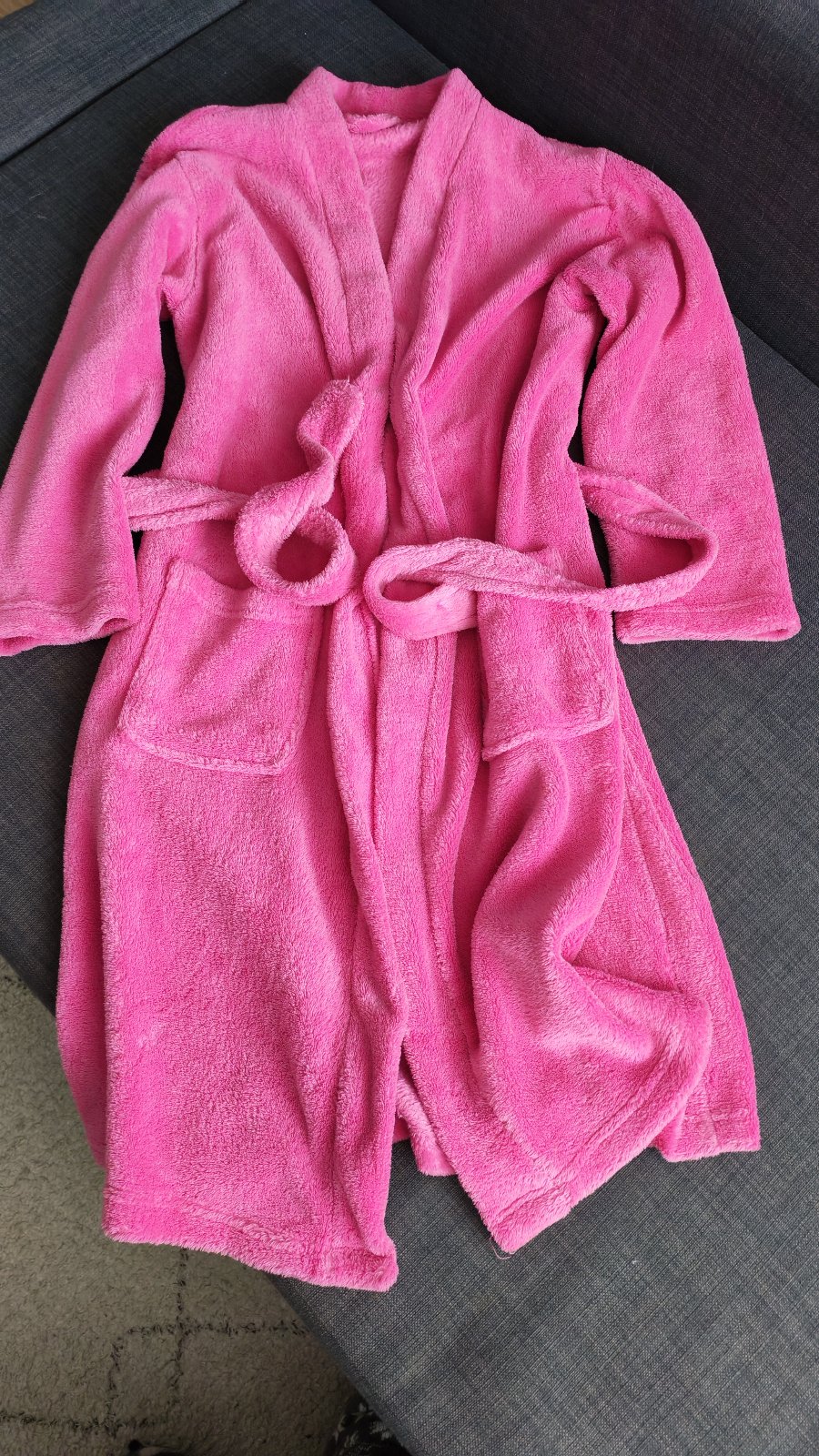 Župan značky F&F, nosený v dobrom stave. S kapucňou a na viazanie v páse. Veľkosť je písaná na 9-10 rokov, my sme ho ale nosili ešte dlhšie.