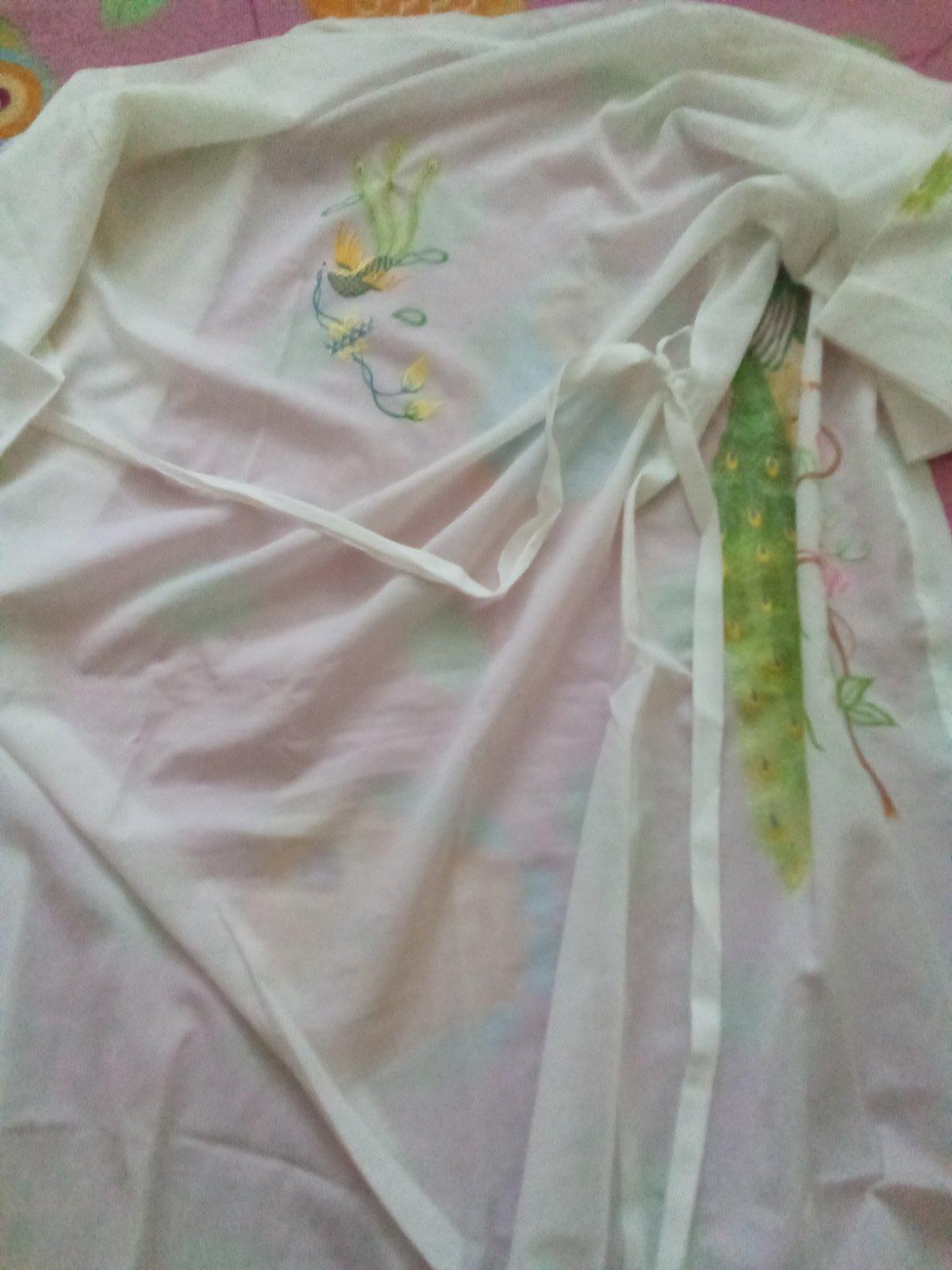 Ajurvédsky wellnes kaftan, používaný, ľahučký, vyšívaný, polyester, malinké dieročky ,vid foto -zohladnené v cene