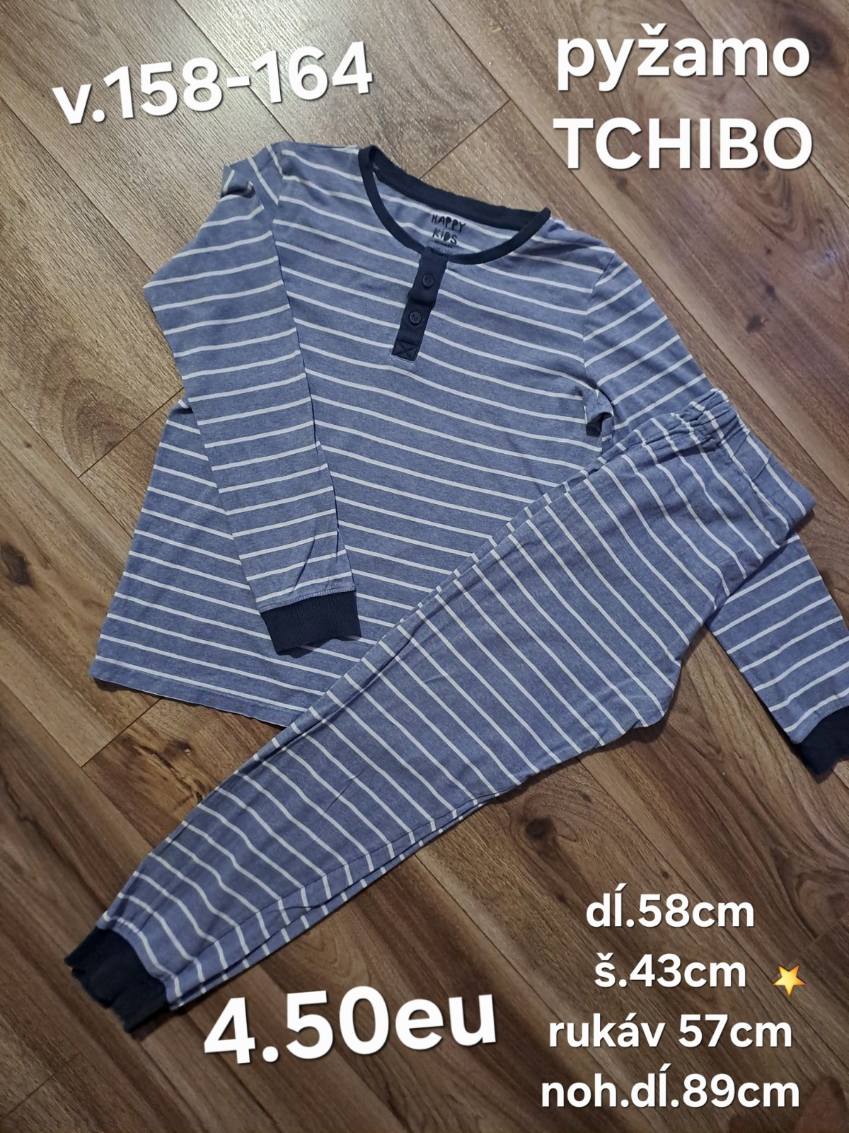 Predám dlhé pyžamá, veľ.158/164. Dobrý nosený stav, bez poškodenia. Rozmery: Tmavomodré s pásikavými nohavicami - vrch: dľ. 58cm, šírka 43cm, rukáv od krku 64cm - nohavice: dĺ. 86cm, pás 2x33 cm v ...