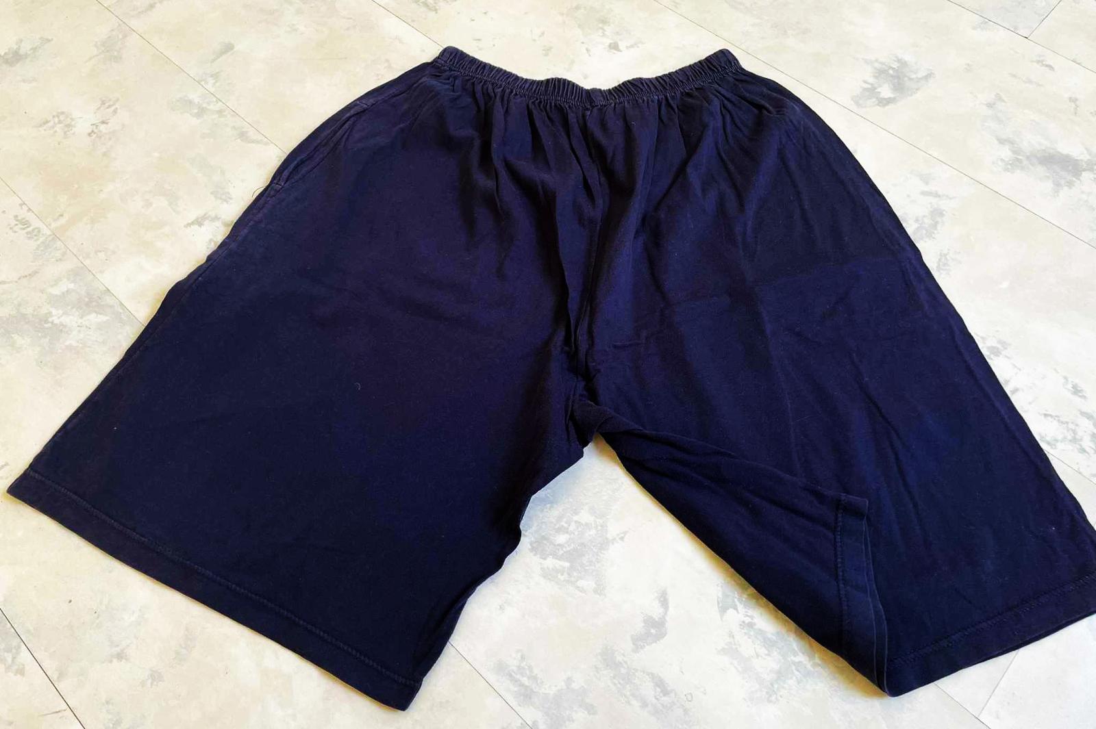 bavlnené nosené šortky z tričkoviny,na boku vrecká,vhodné ako voľnočasové šortky,na pláž, na doma alebo na spanie,dlžka = 58 cm,pás v kľude 40 x 2 cm, poddá sa do 60 x 2 cm (maximum ),veľkosť 44/46,100% bavlna
