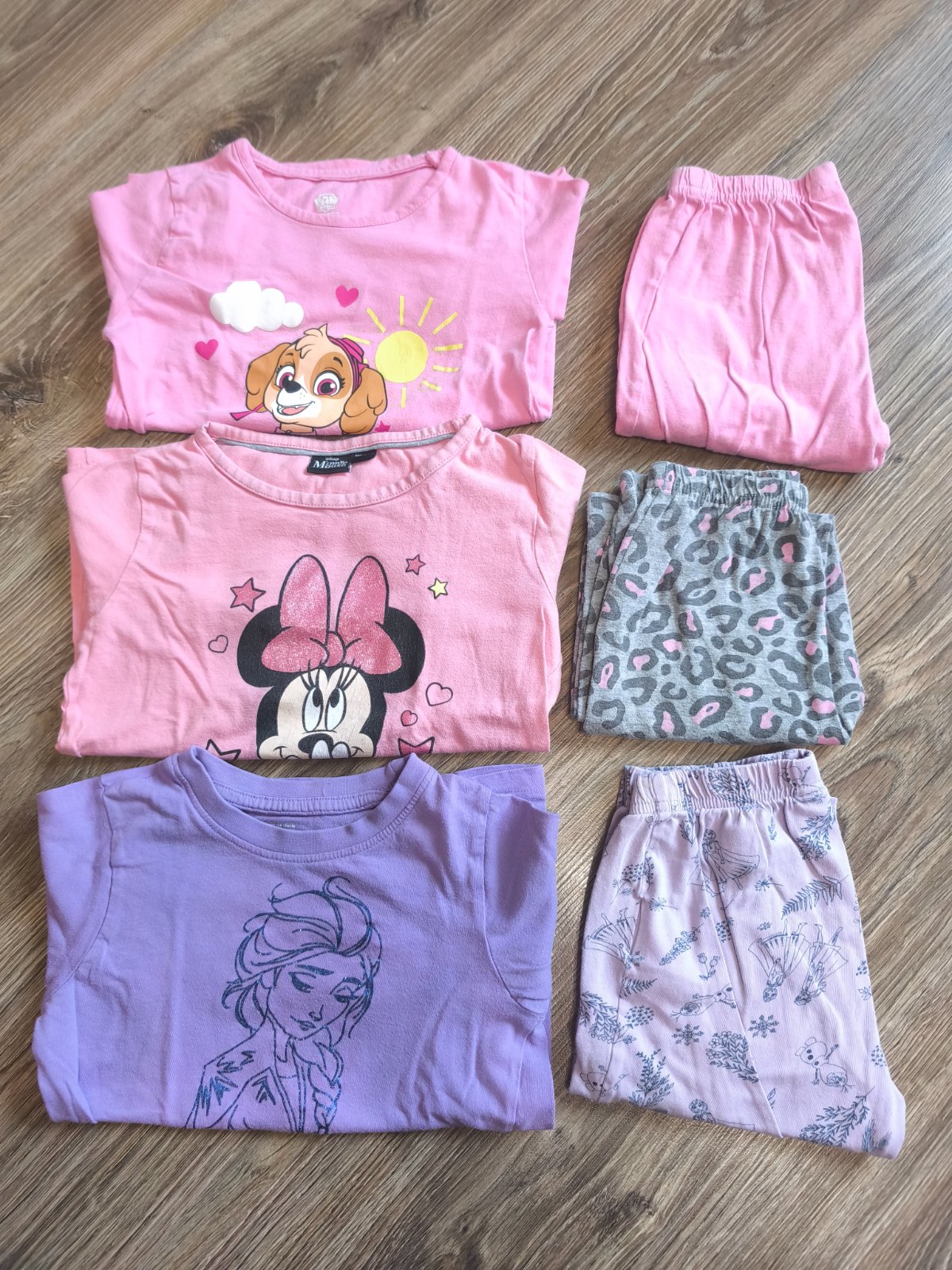 Ahojte. Predám tieto pekné dievčenské pyžamá. Nosené no v peknom stave. Rozmery na foto. Cena spolu.