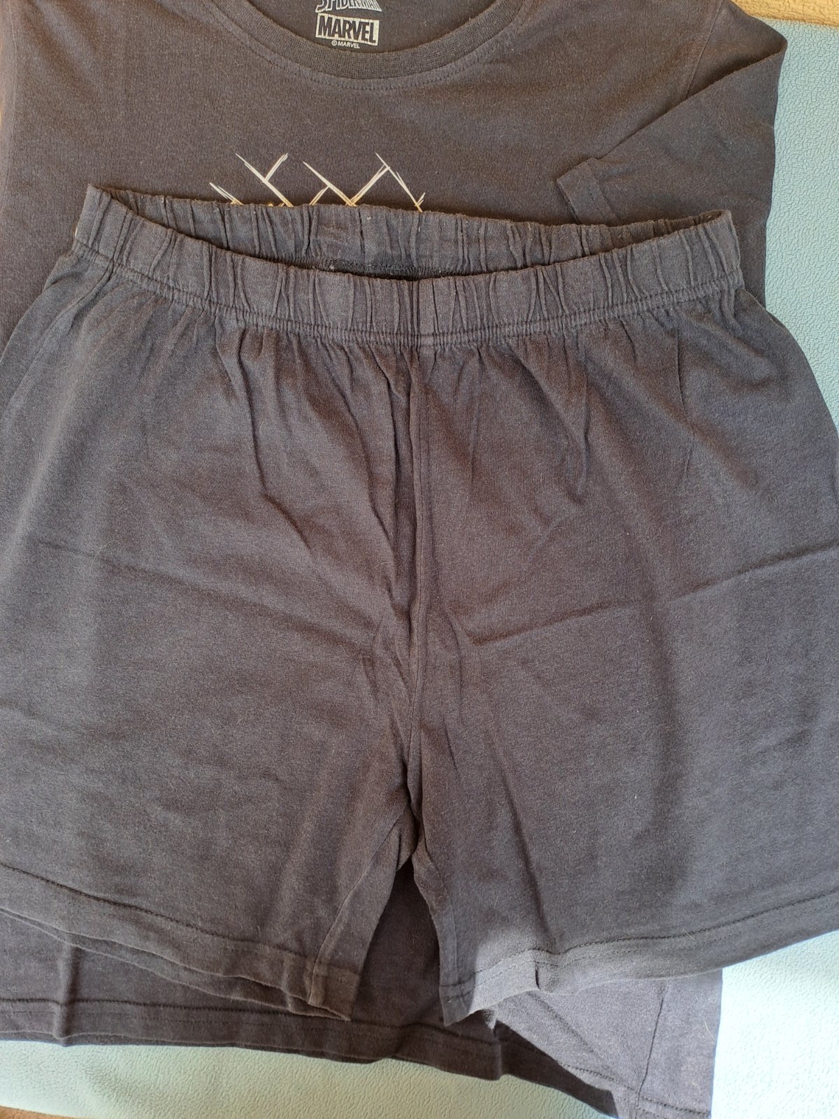 Predám dvojdielne chlapčenské pyžamo s krátkym rukávom, veľkosť 146-152 cm, bez poškodenia. Šírka vrchného dielu 48 cm, dĺžka 52 cm, rukáv 16 cm. Nohavice obvod pása 32 cm, dĺžka 37 cm, od rozkroku...