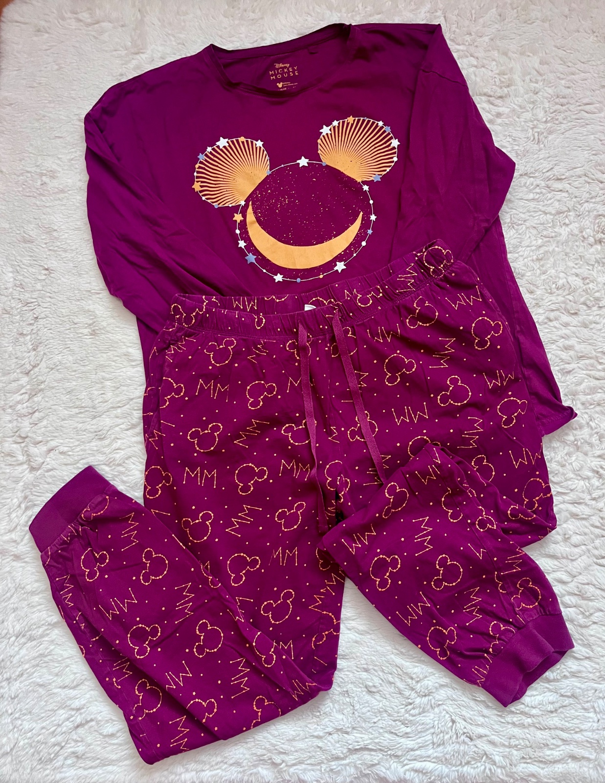 Pyžamo v dobrom stave,je to dámska veľkosť,ale pri praní sa zbehlo na detsku velkosť,odhadujem na 164. Vrch má dĺžku 58cm a spodok 91cm.