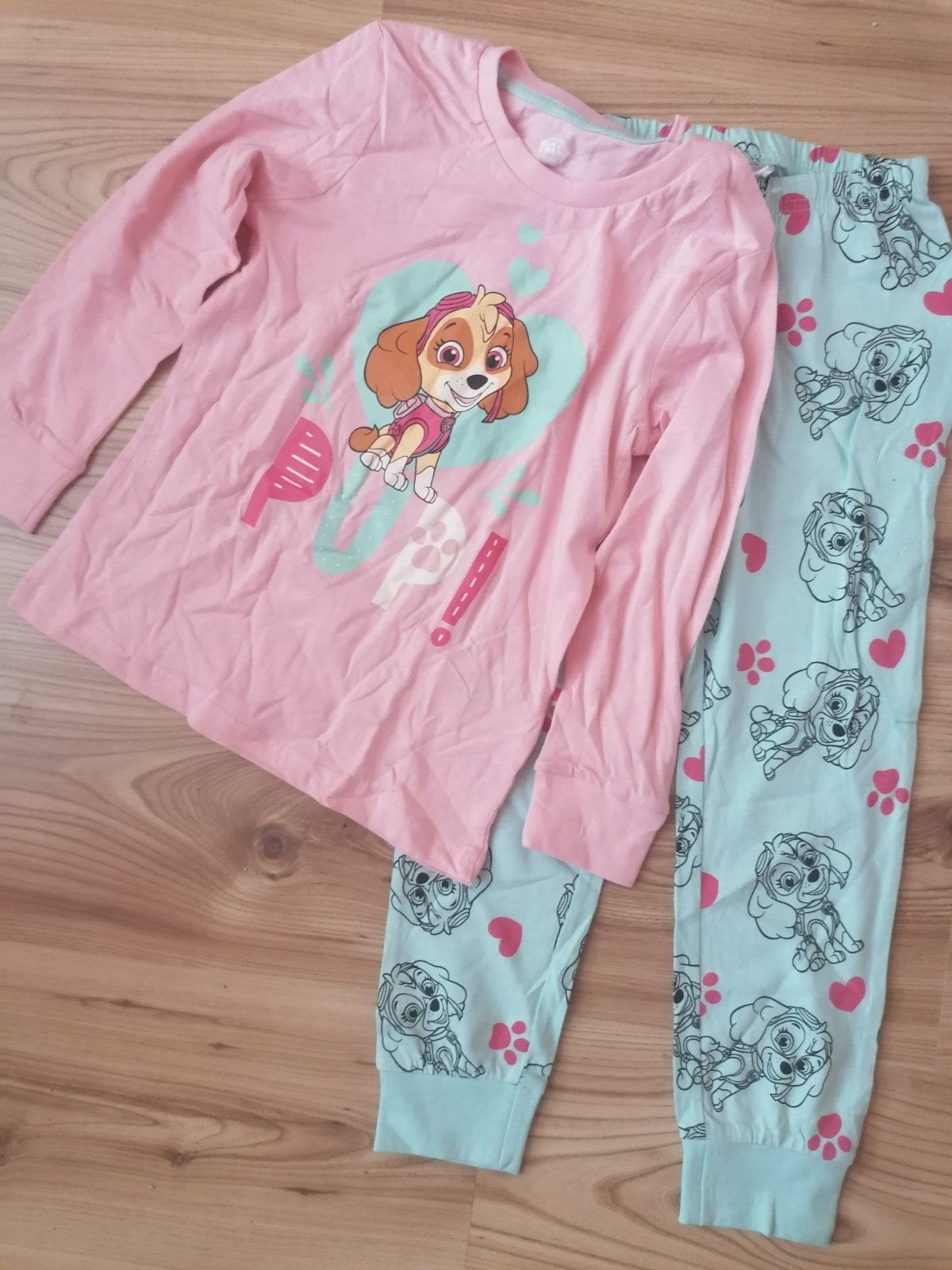 Pyžamko je nové, je bavlnené, veľkosť je uvedená 110 /116.