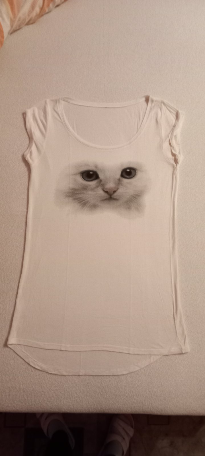 Nenosená bavlnená košieľka, len opratá. Nevyužila som. Ramienka nastaviteľné. Dĺžka s ramienkami cca 86 cm. Širka cez chrbátik (v kľude) pod prsiami: 2 x 42 cm Cena: 6 eur + poštovné