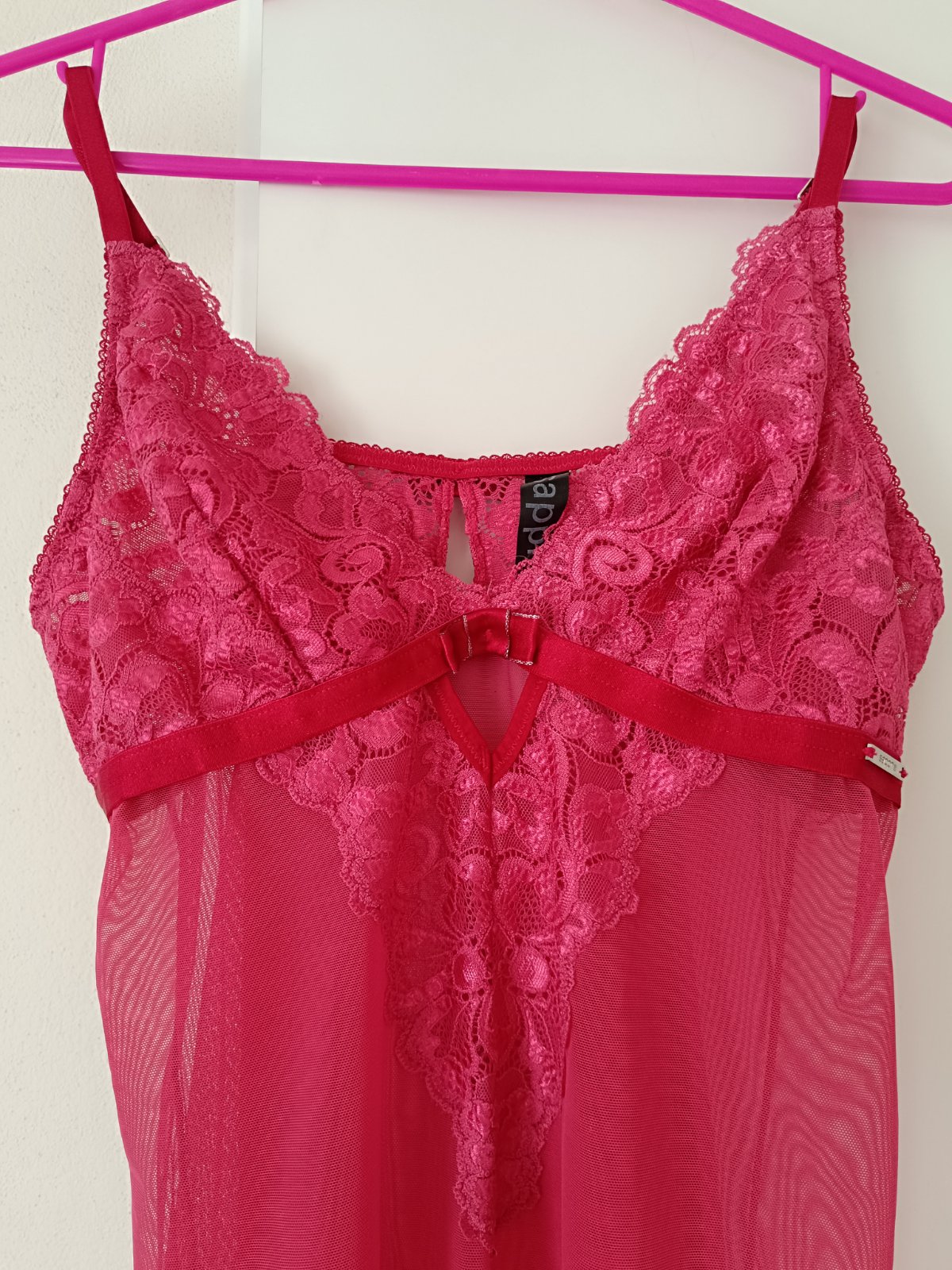Predam nenosenu kosielku spolu s tanga nohavickami. Nohavicky neboli oblecene. Nosim M/L. Kosielka len skusana. Odporucam na velkost S. Krasna.