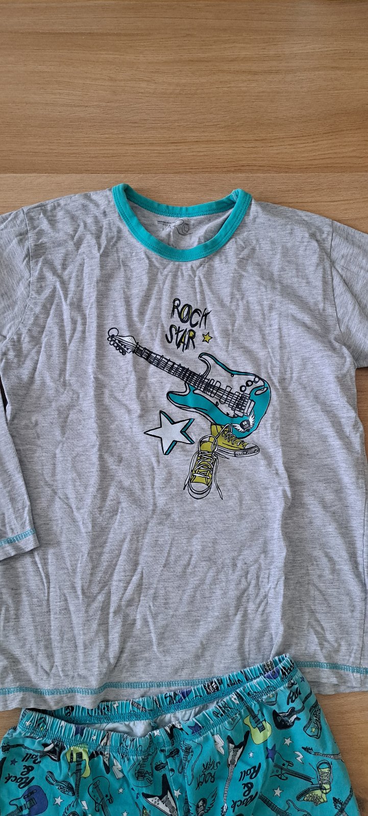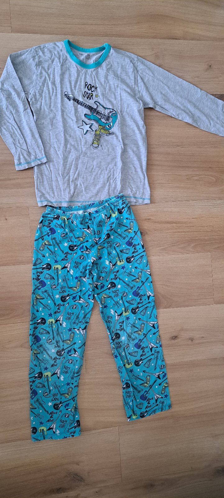 Pyžamo po jednom dieťati bez poškodenia, jemne ošúchané kolená.