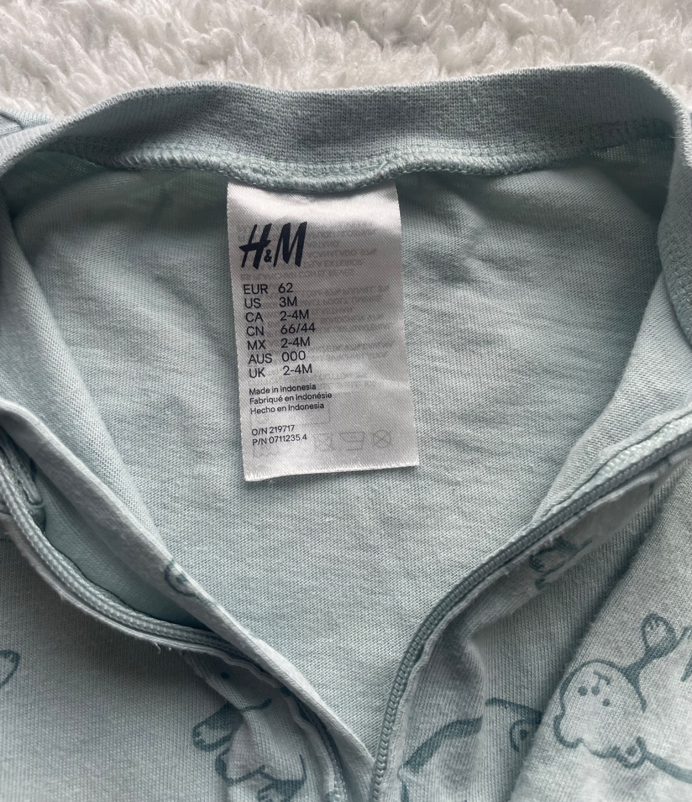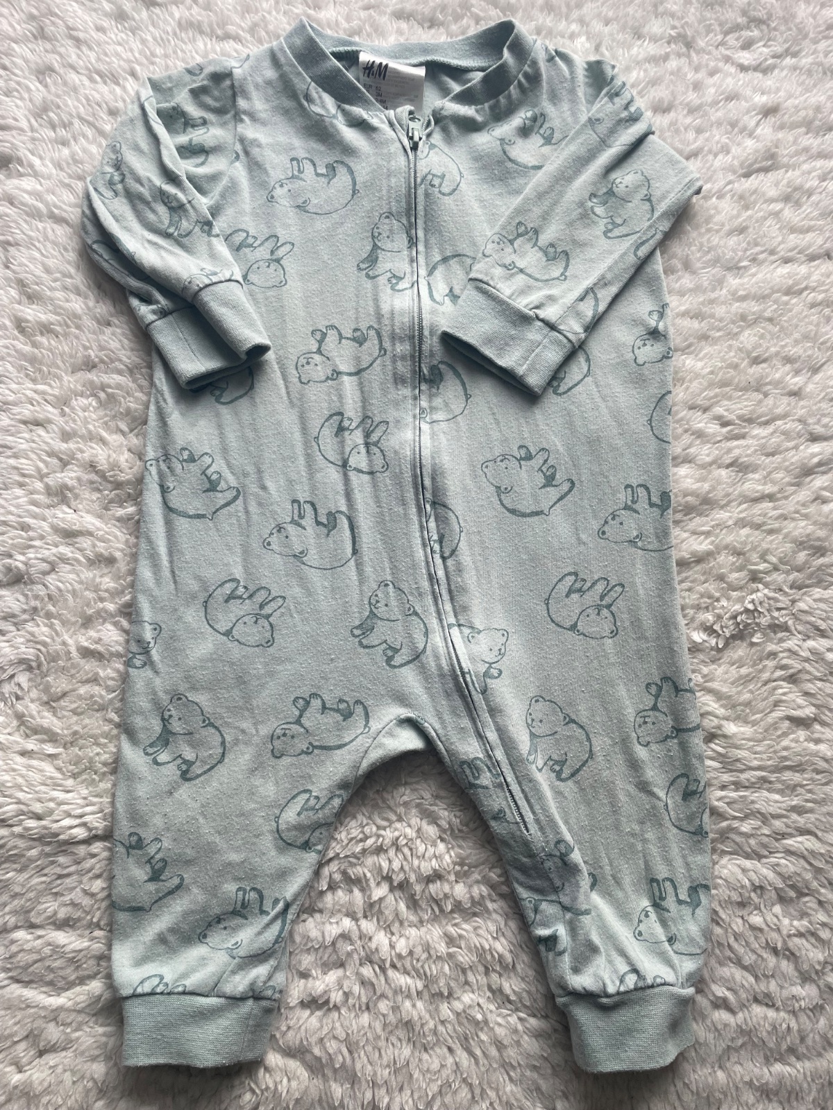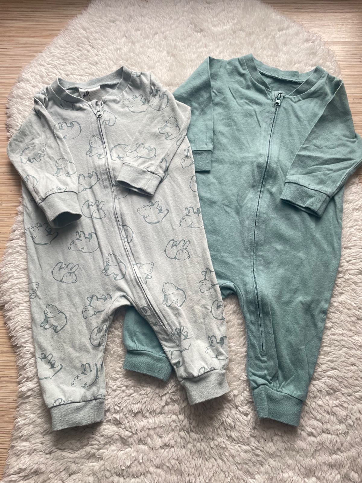 Zelenkaste s medvedimki a bledotyrkysove pyzamo na zips, jemny material, bez dier a flakov, velkost 62, na jednofarebnom chyba velkostny stitok