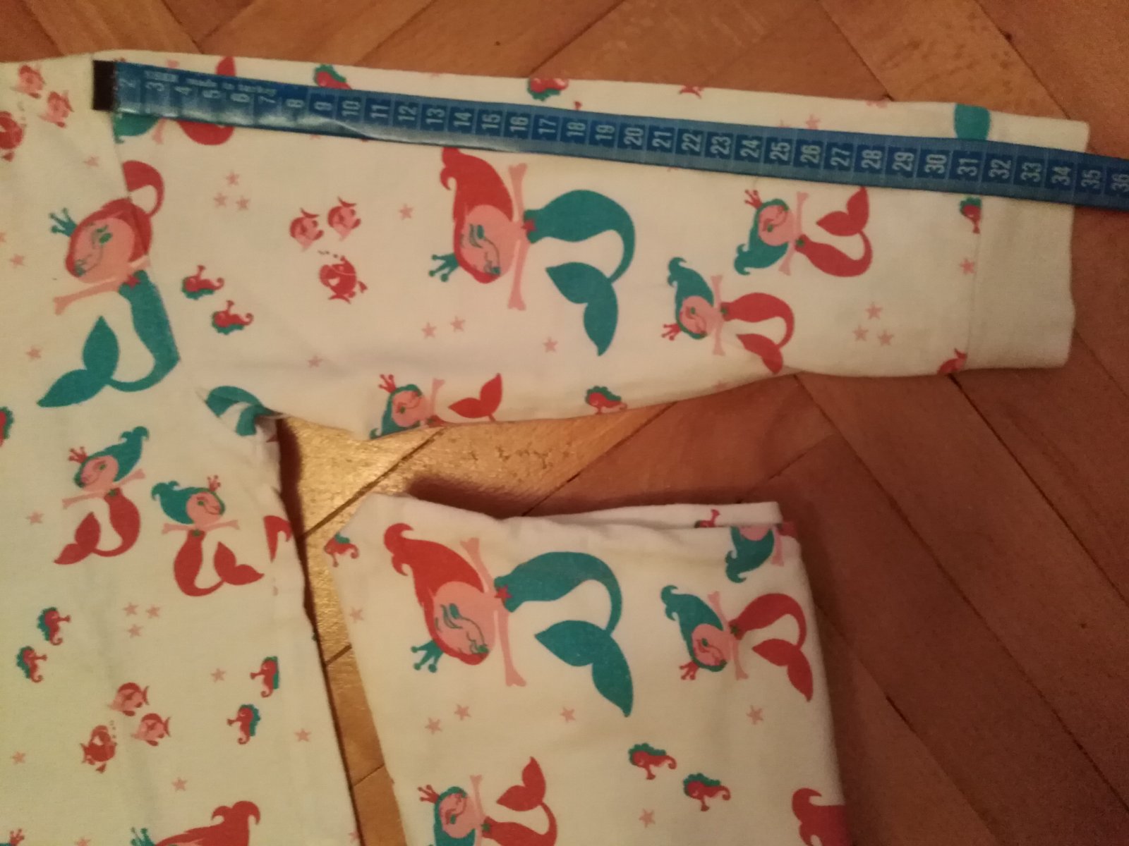 spodok pyžama, dĺžka 97 cm, šírka pás (na gumu) 40 cm, natiahne sa až na 50 cm, pás vyblednutý