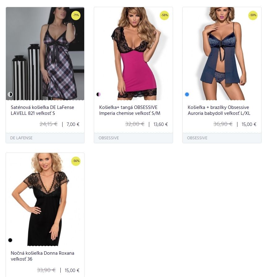 Nočné košieľky dopredaj z eshopu rôzne modely