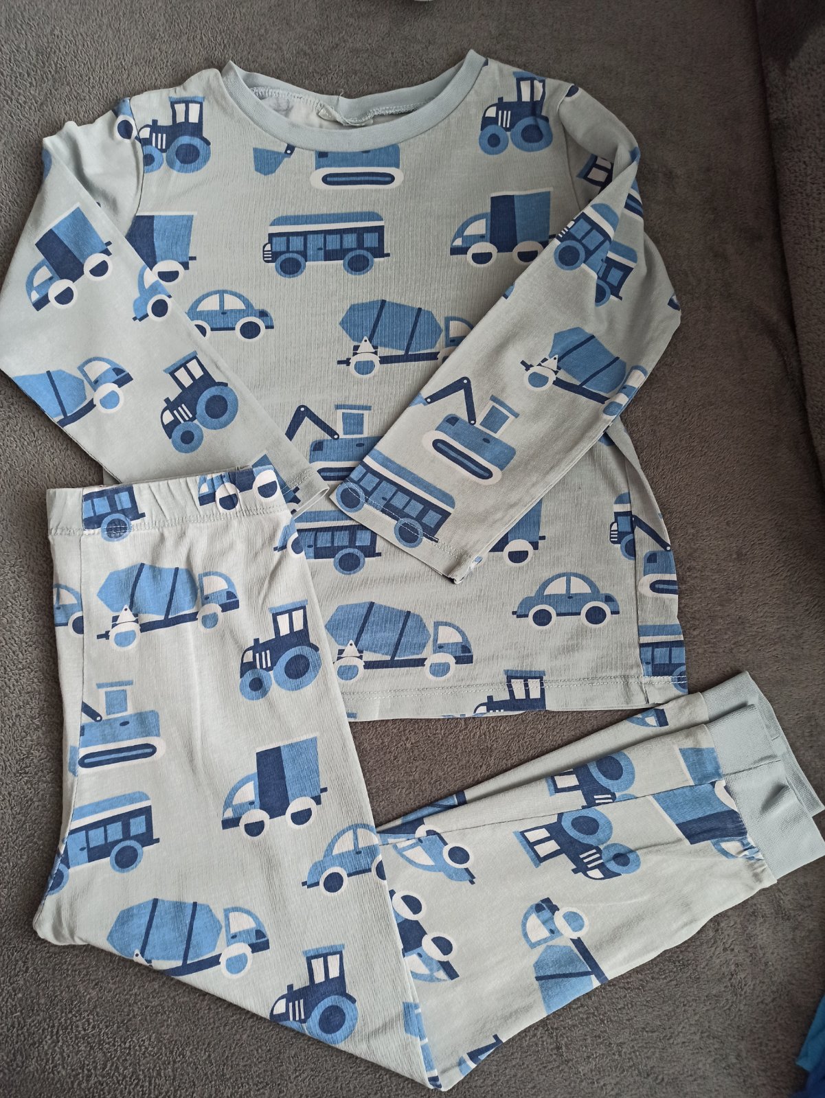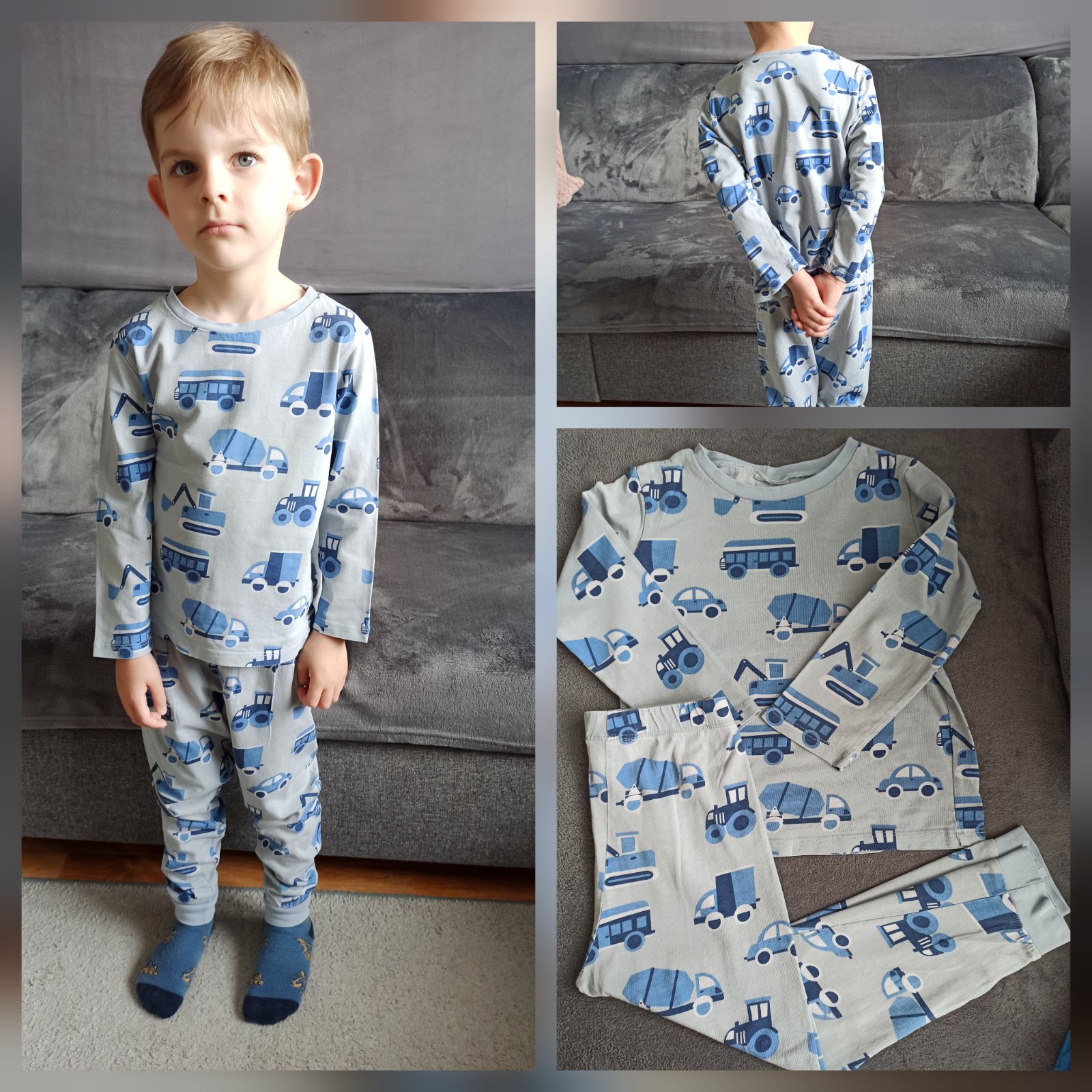 Pyžamo zachovalé , šedé mesiacikove Slovenka veľkosť 110 . , Ma vzadu na chrbte z vnútornej strany meno . Cena 3€ .