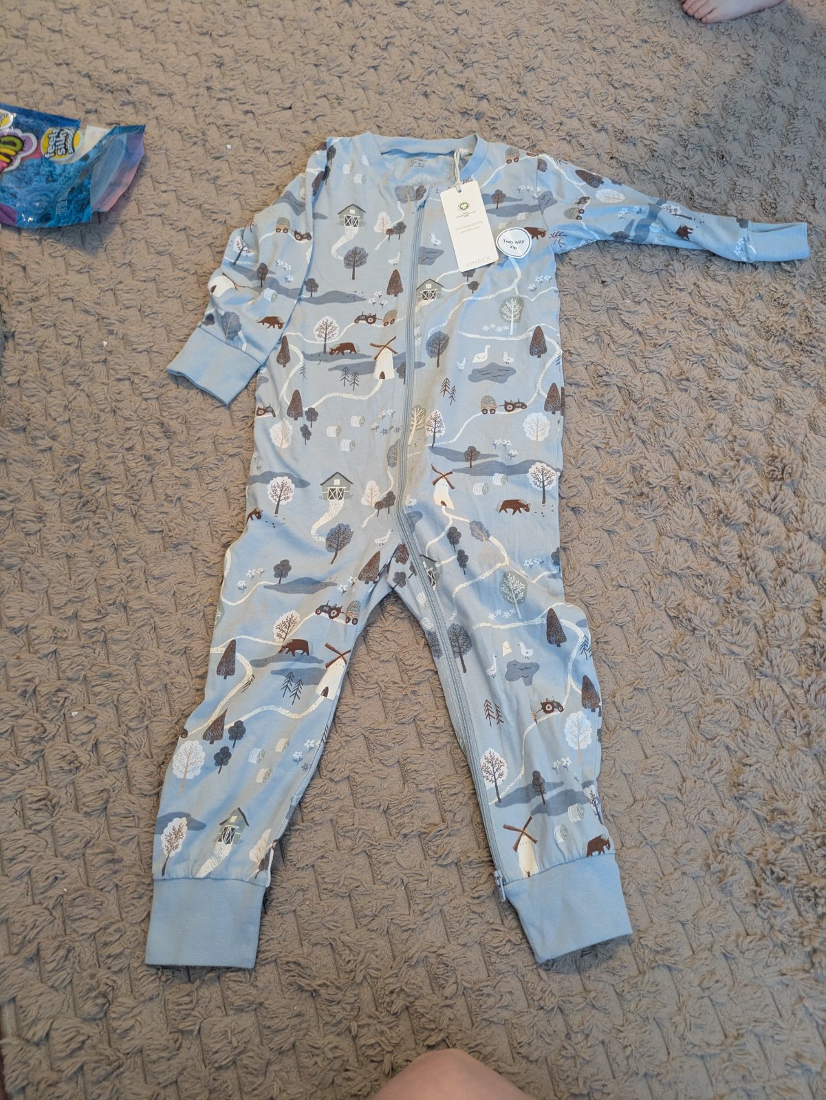 Kvalitne bavlnene pyzamo Lindex so zapinanim na gombiky a medzi nozickami na cvocky, s prednym vreckom, neznicitelne, neposkodene, vydrzalo nam ako dvojcislo 92-98. Nosili by sme ho dodnes :)