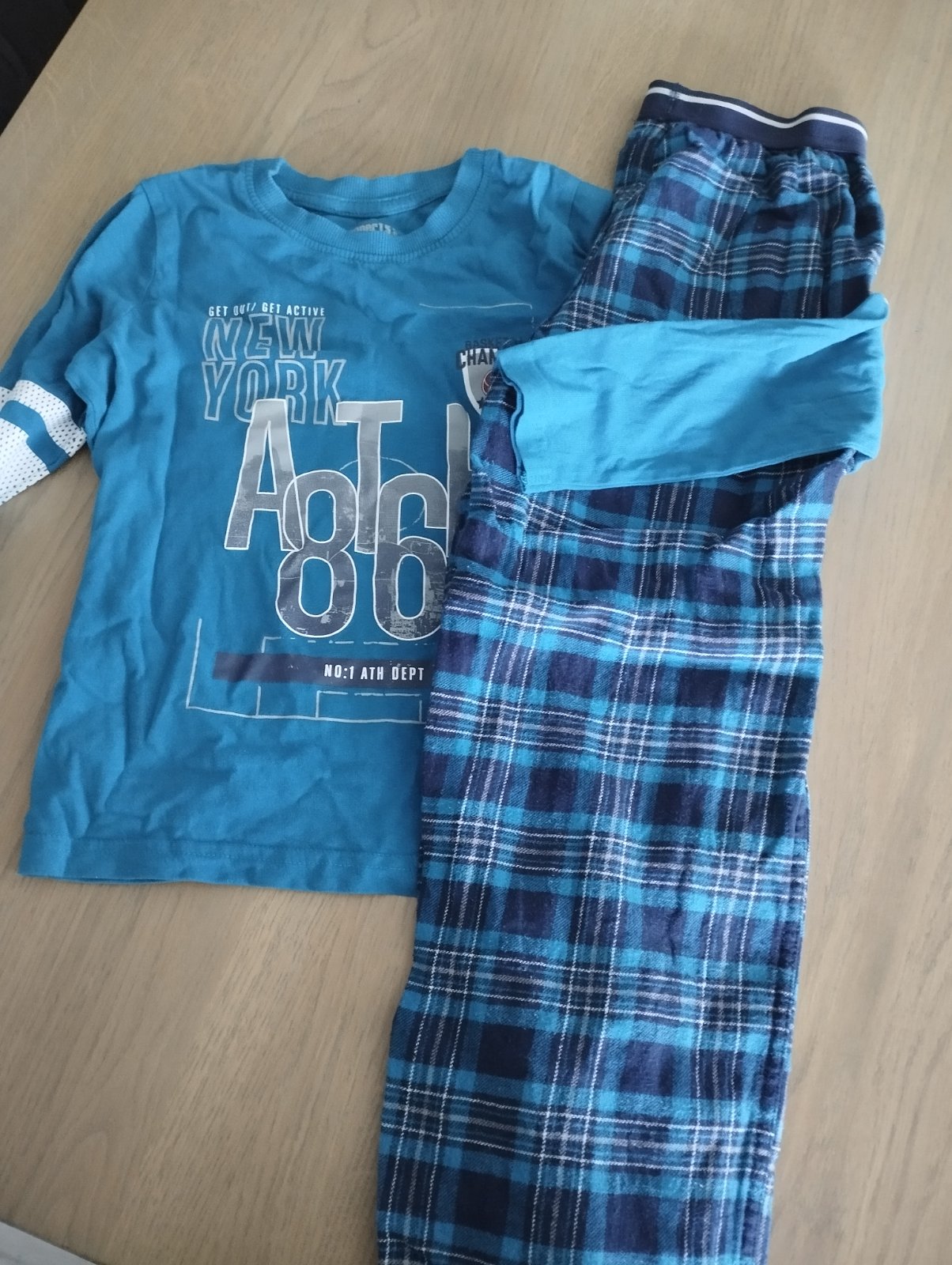 Krásne pyžamo tyrkysovej farby. Nosené iba do škôlky na výmenu s iným pyžamom, takže stav je veľmi dobrý