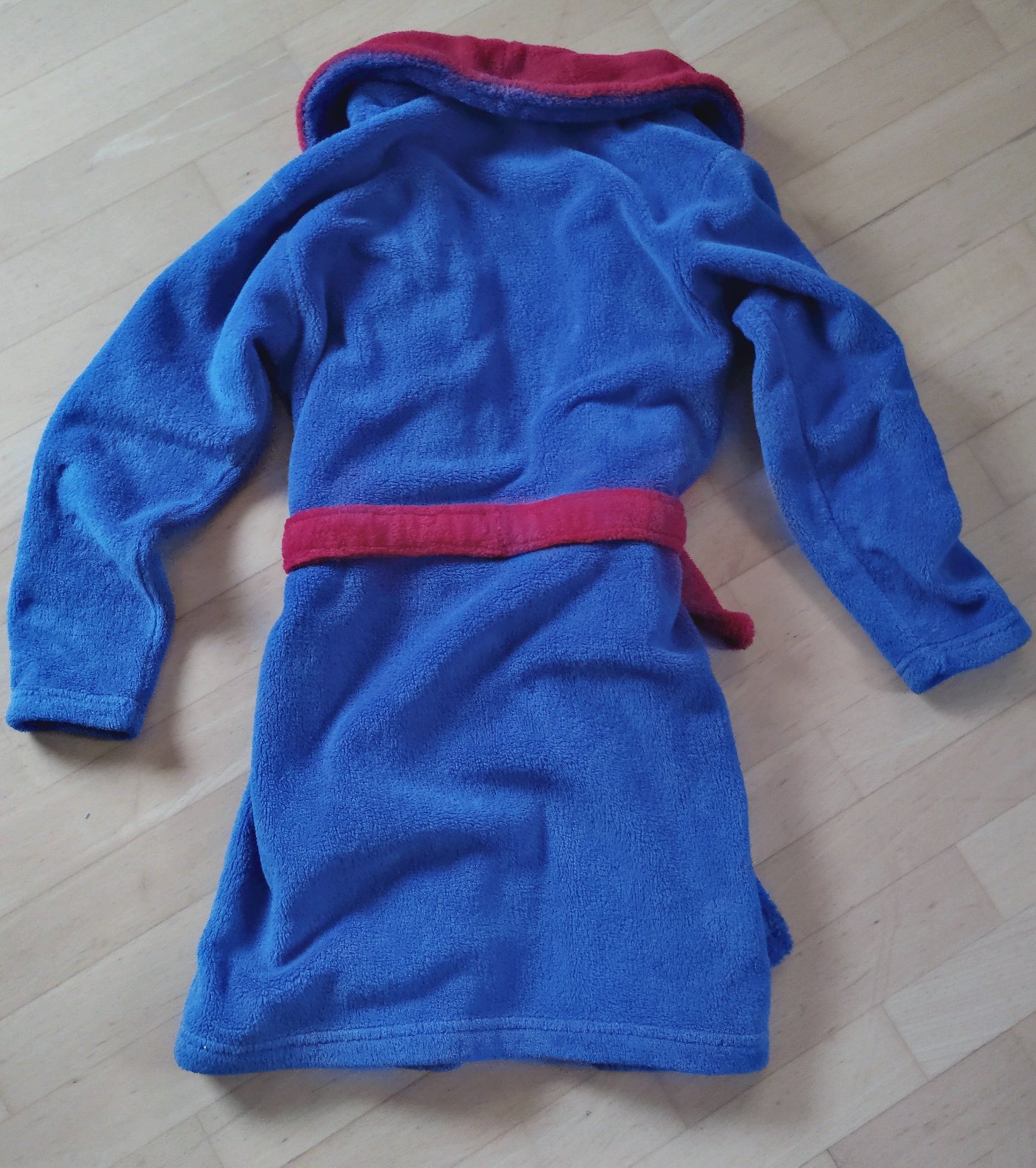 Župan vo výbornom stave, vhodný aj na darovanie. Tmavomodrý, hrubší, mäkkučký. Pre 11-12 ročných.