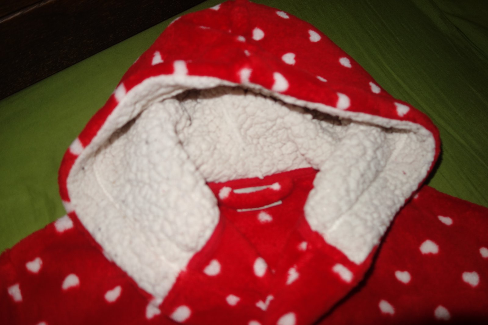 Krasny zupancek vo velmi dobrom stave.V kapucni je taky barancek a to je taky trocha nevdacny material, lebo sa don rychlo nachytaju rozne nitky, takze ten nevyzera velmi dobre, hoci je zupancek inak skoro ako novy.