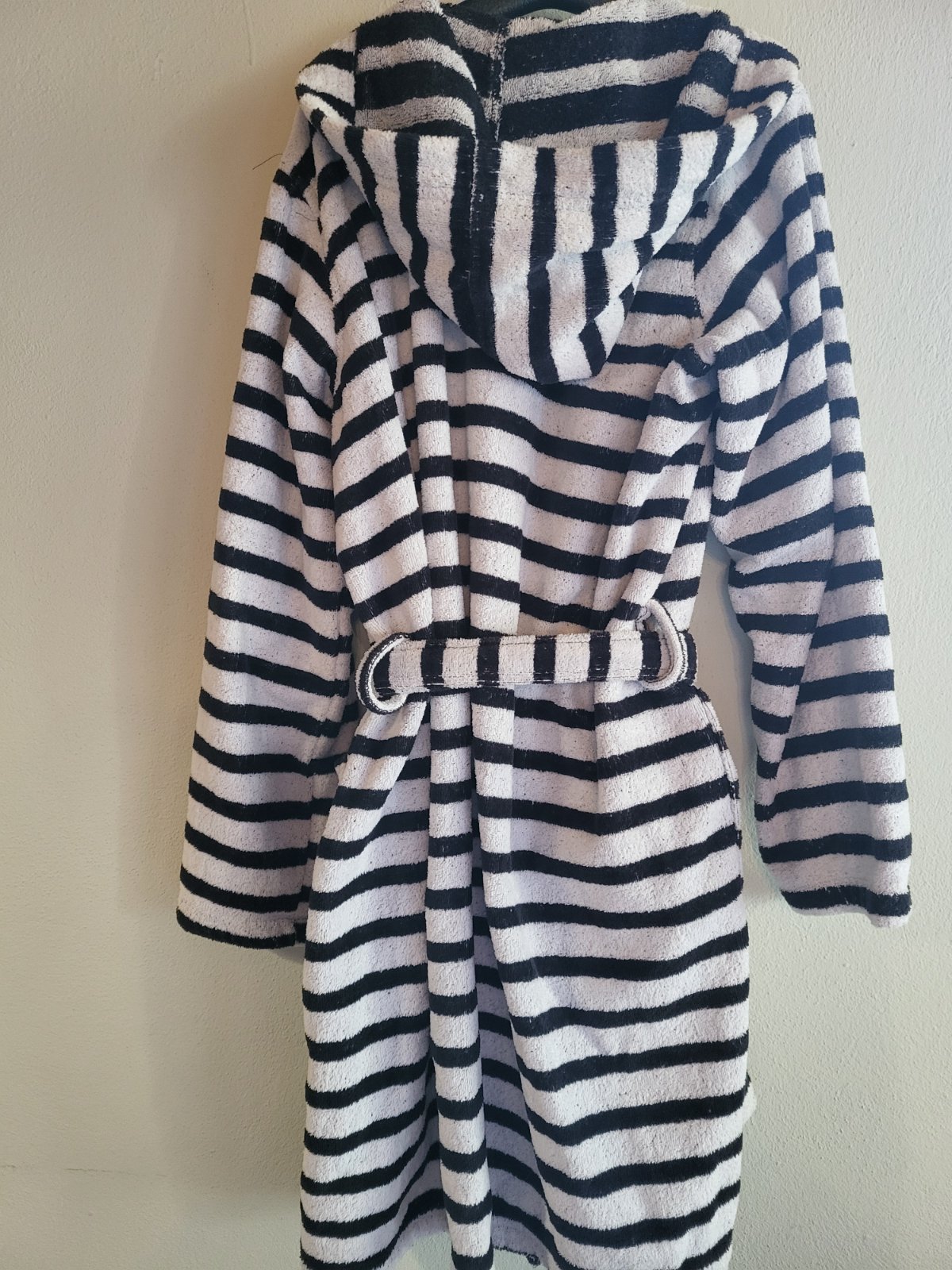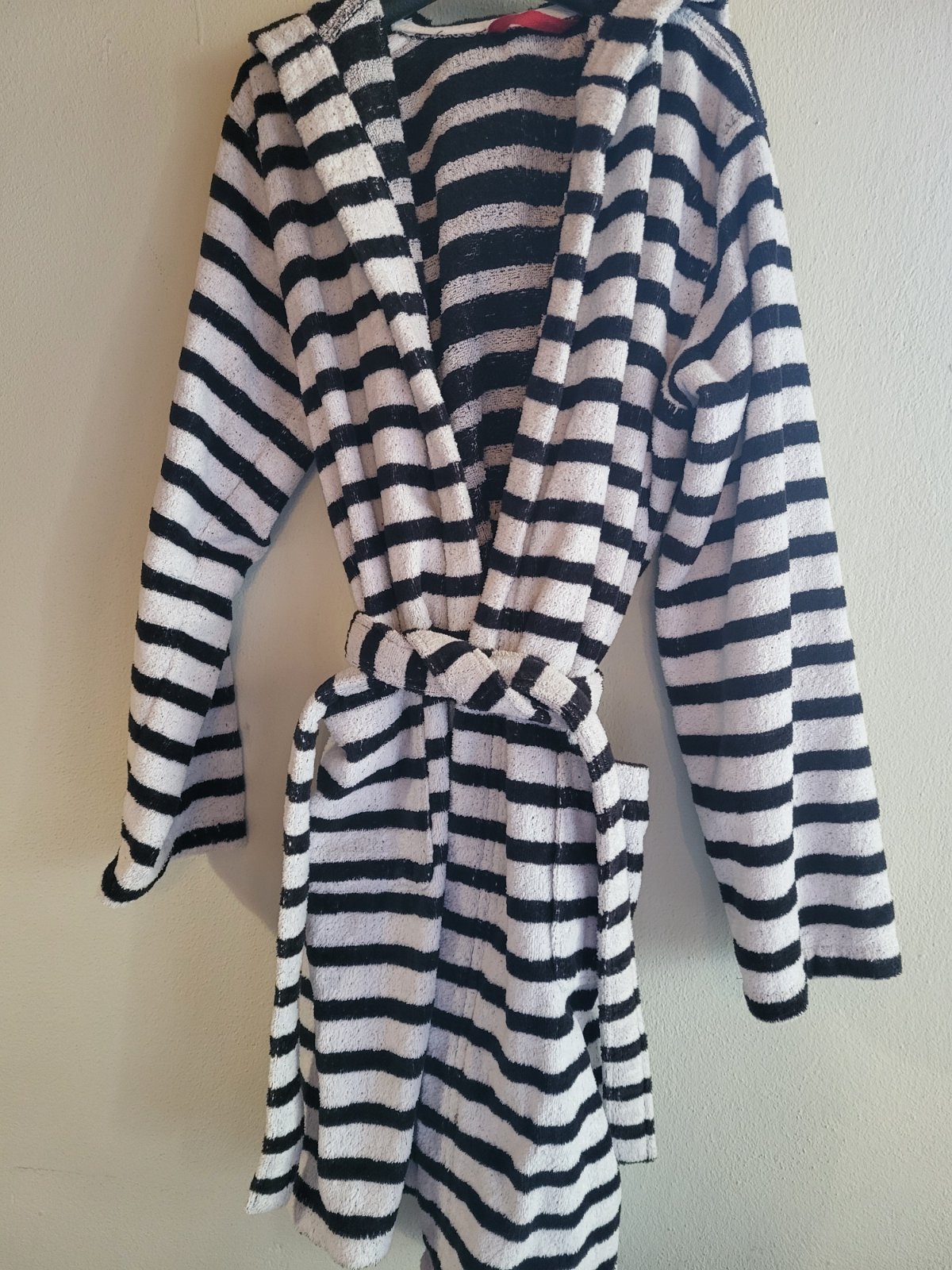 celková dĺžka 90 cm, príjemné hrubšie froté, 2 nabité vrecká, kapuca, zachovalé, bez poškodenia