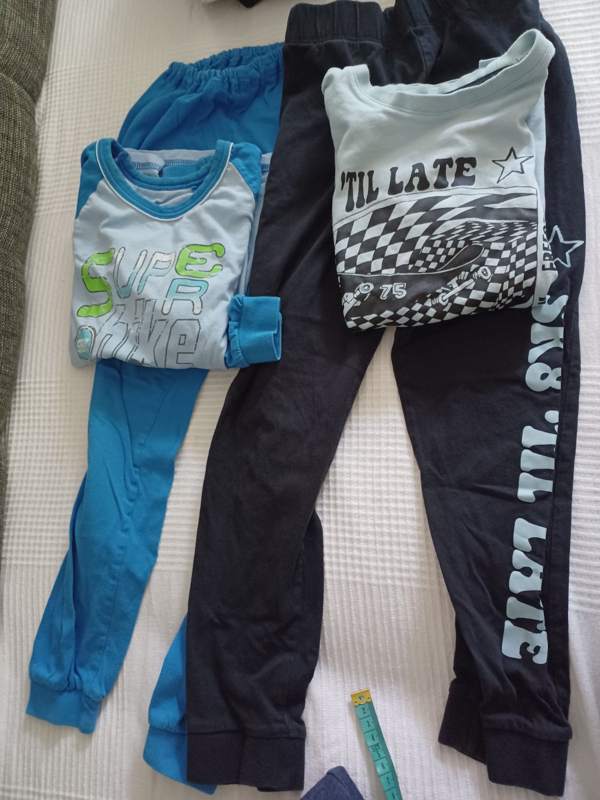 Pyžamo jedno z krátkym rukávom s čiernymi nohavicami.A to modré dlhý rukáv na donosenie