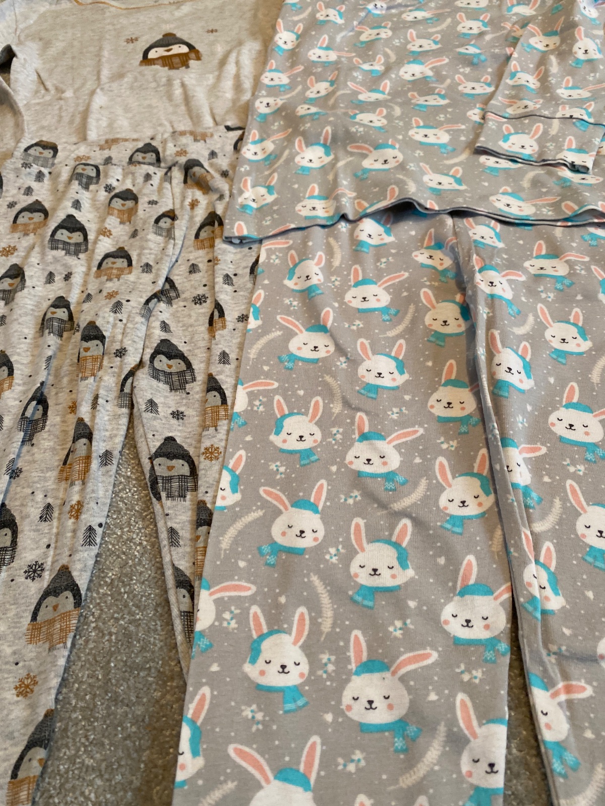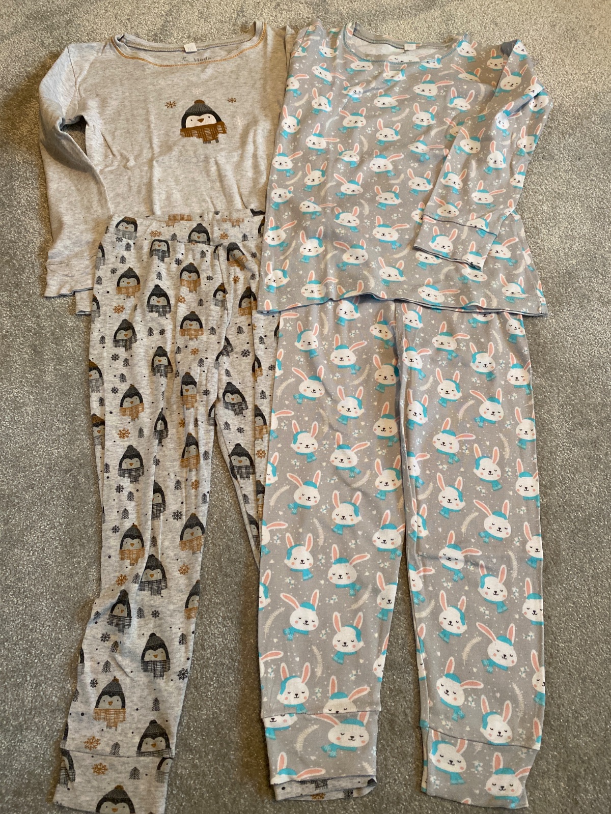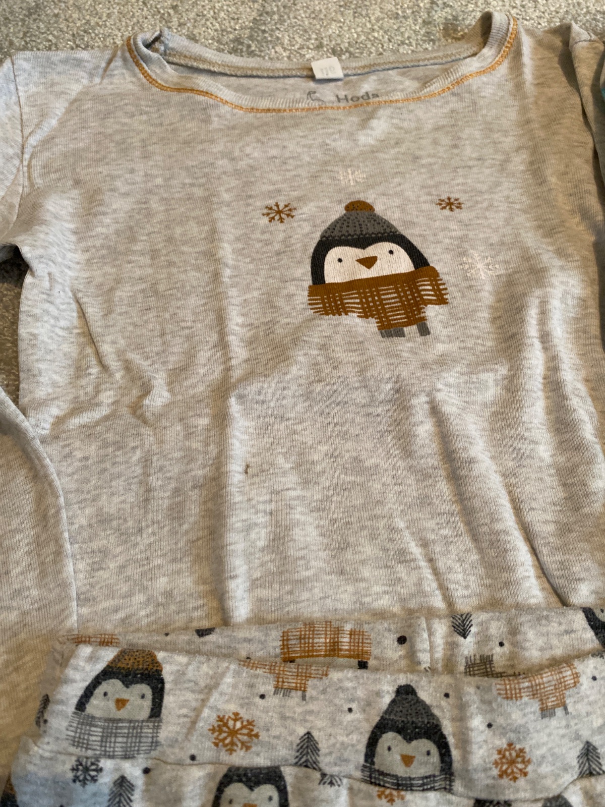 Pyžamká nosene do škôlky maju vzadu z vnútornej strany meno vid foto . Ale zachovalé len vianočné ma maličký fliacik vid foto . Inak ok . Predám aj samostatne . Spolu 6€