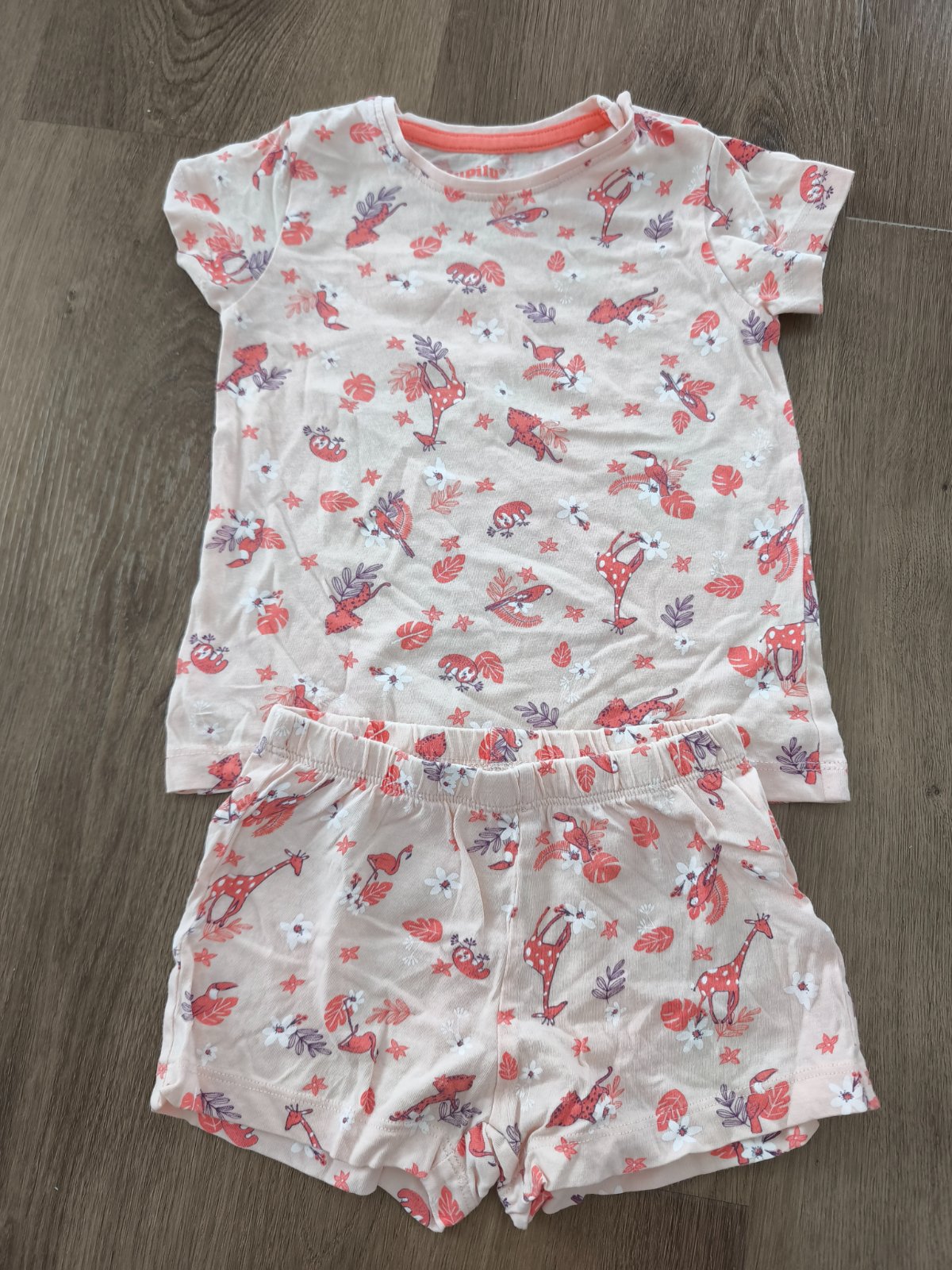 Kratke letne pyzamko v peknom stave, cvocky pri krku uz tak silno nedrzia. Ma bleducku lososovu farbu. Velkost 86/92