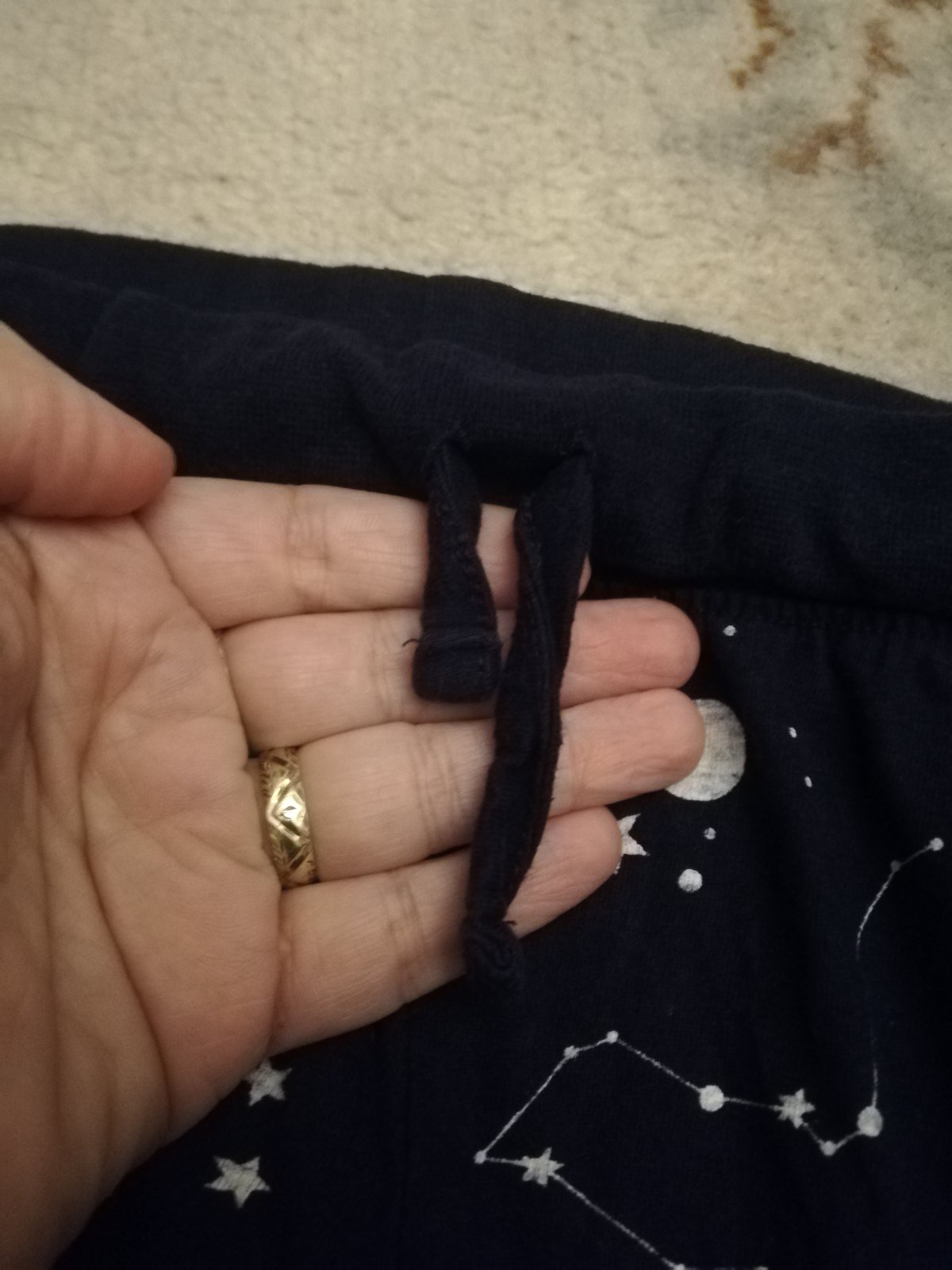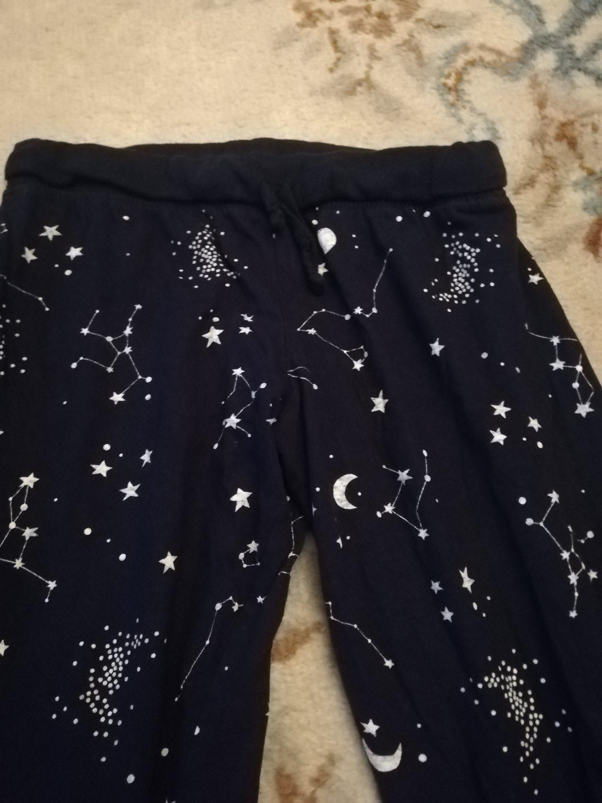 Predám pekné pyžamko. Vysačku som odstrihla, riaďte sa prosím rozmermi. Rozmery: obvod cez prsia 36cm x 2, dĺžka od pleca dole 48cm, rukáv od pleca 48cm, pas 30cm x 2, vonkajšia dlzka 67cm.