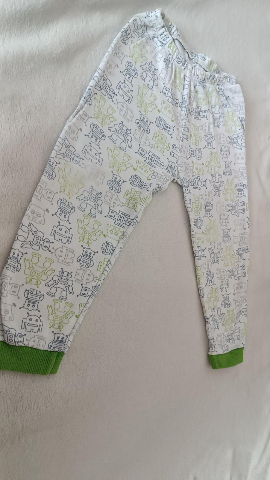 Pyžamo s robotmi, veľkosť odhadom 104, v prípade potreby premeriam, cena za nohavice 0,50 eur, nakoľko na tričku je fľak. Alebo darujem k nákupu.