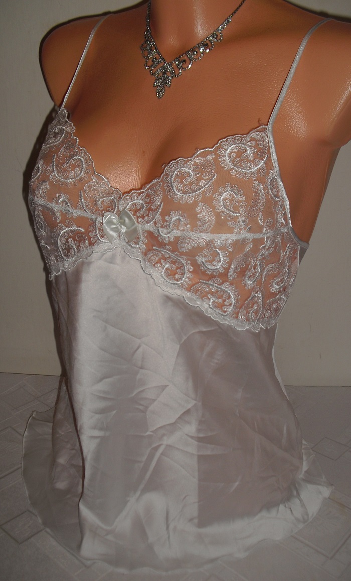 predam nadhernu satenovu luxusnu kosielku taliansku italy , svadobna bielizen, nadhernopm vybornom stave, kvalitna, na poprsi zdobena, velkost ide na vacsie m, sirka 42 cm x 2, dlzka cca 63 cm celkova.