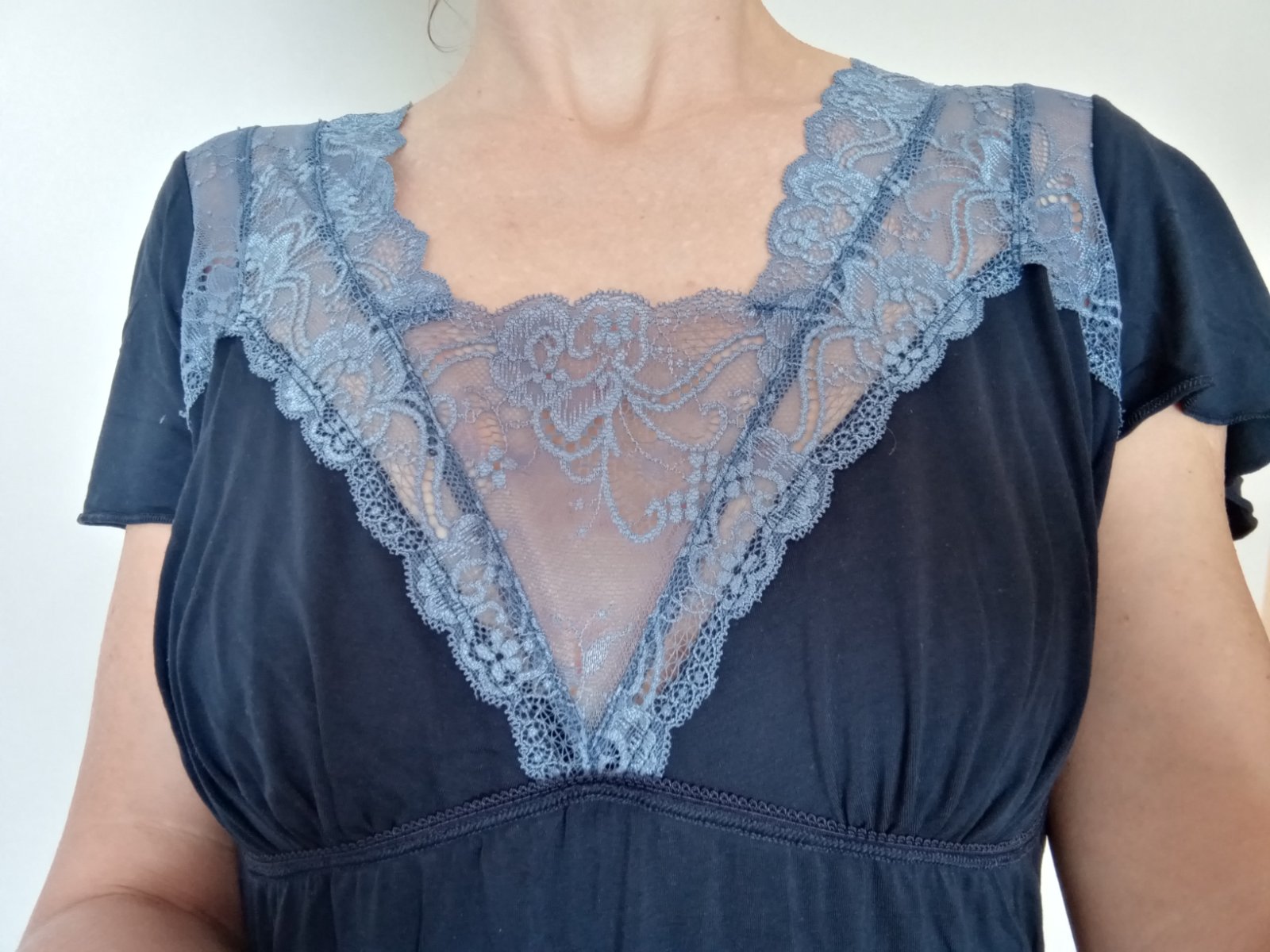 Viskózová nočná košeľa s krajkou. Kvalitná, hebká, príjemná na dotyk.