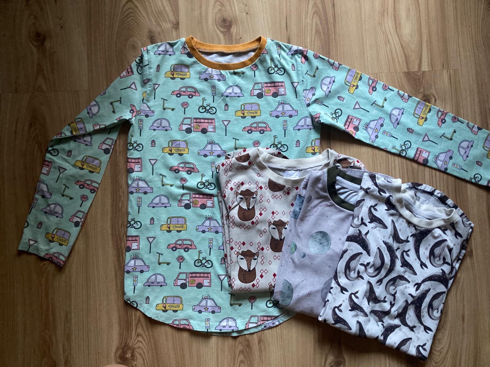 Pyžamkové tričká, mnou šité , po mojom synovi, bežne známky nosenia, bez poškodení. Predĺžené. Cena za všetky. Veľkosť 152/158. Gate zodral, v prípade záujmu môžem ušiť nové jednofarebne. Z bavlneneho úpletu.