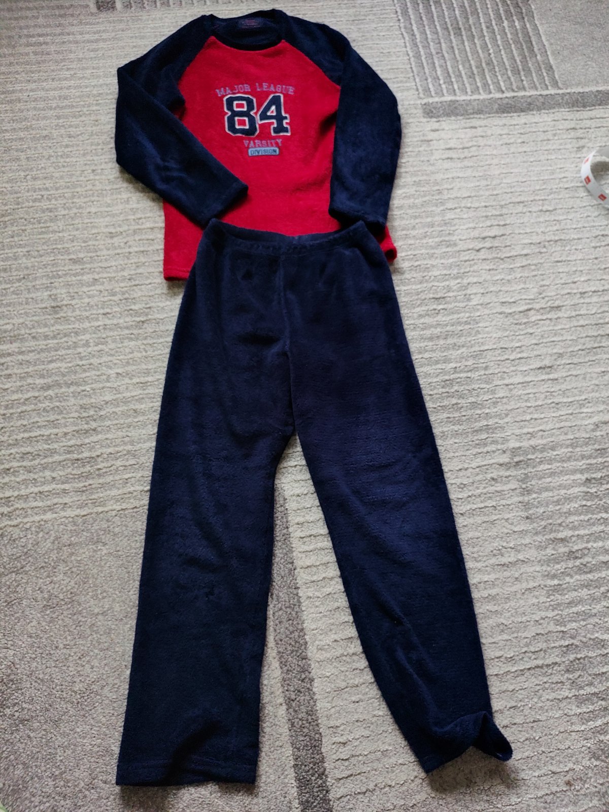V dobrom stave. Vrchný diel dĺžka od krku dolu 59cm, rukáv 59cm ( merané tiež od krku). Nohavice dĺžka zvonku 89cm, dĺžka zvnútra 64cm, pás 29cm, na gumičku. Cena 3€ + poštovné slov.pošta. Osobný odber Nové Zámky.