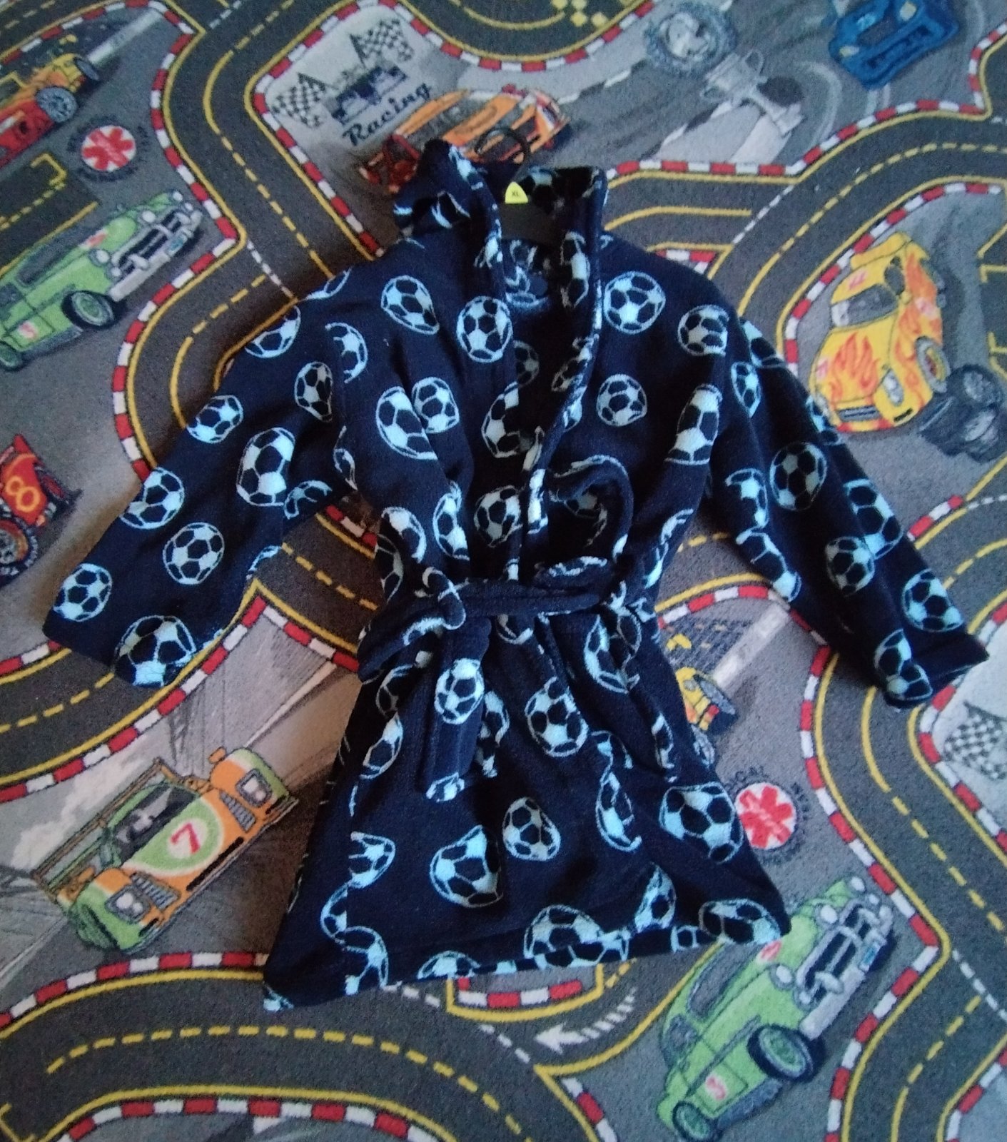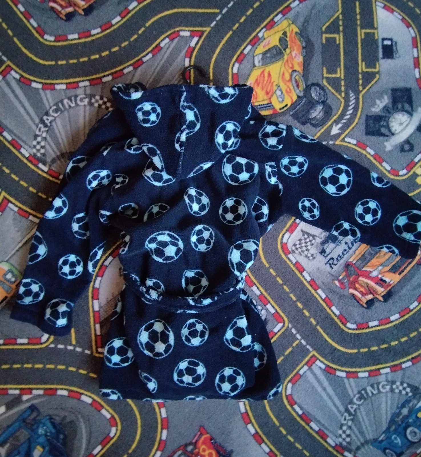 Predám chlapčenský župan, v. asi 140 - 146 (približné rozmery na foto). Menší nedostatok na foto.