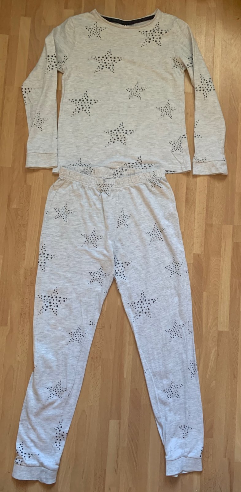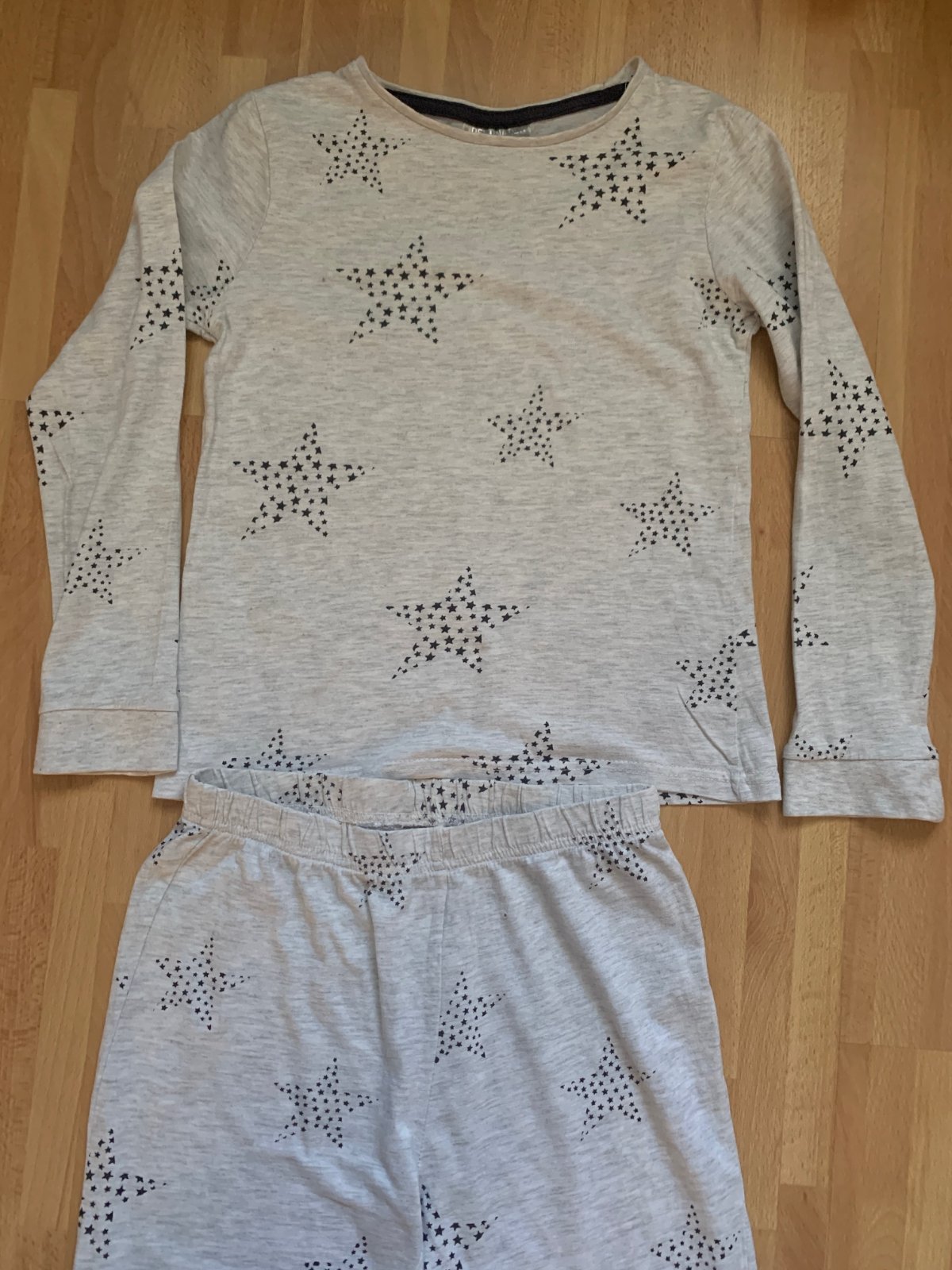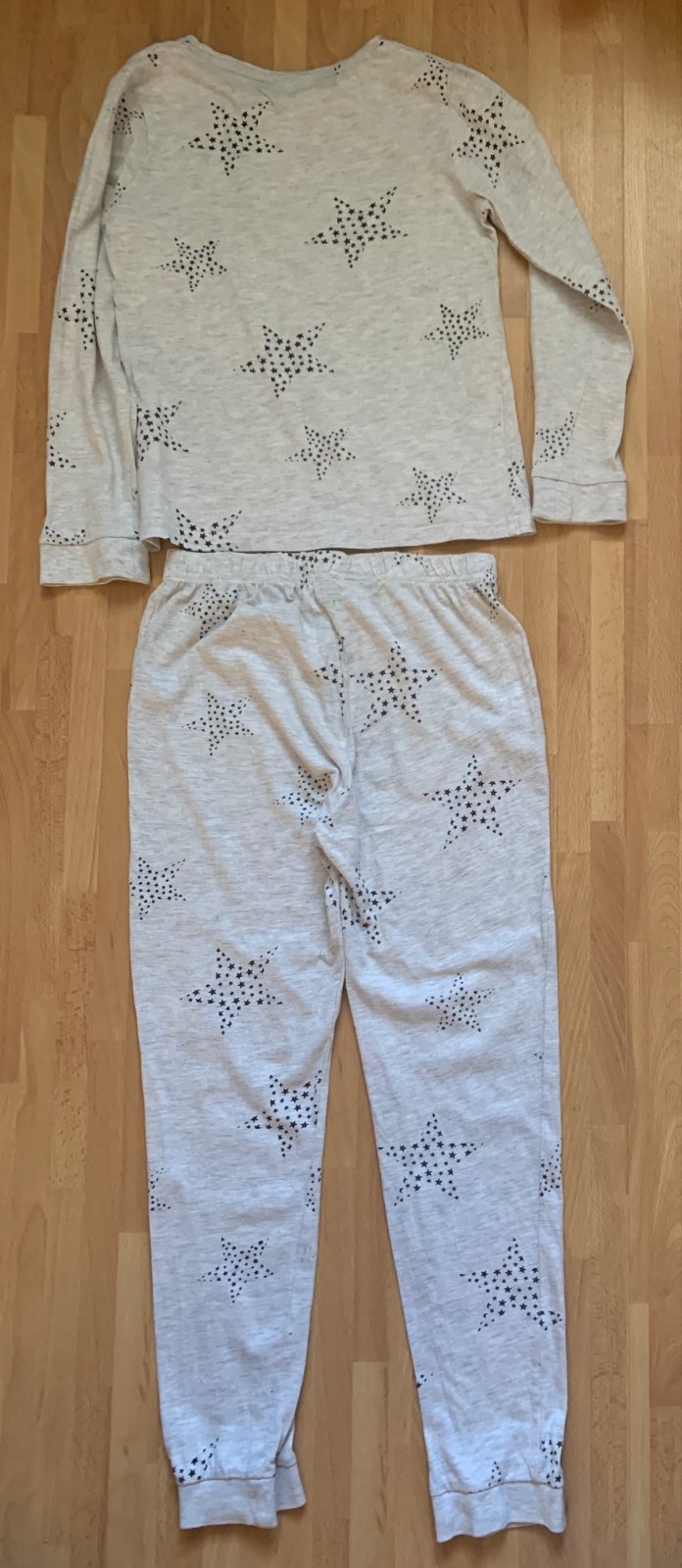 Málo nosené pyžamo je v peknom nosenom stave. Na spodnej časti je jedna malá dierka.