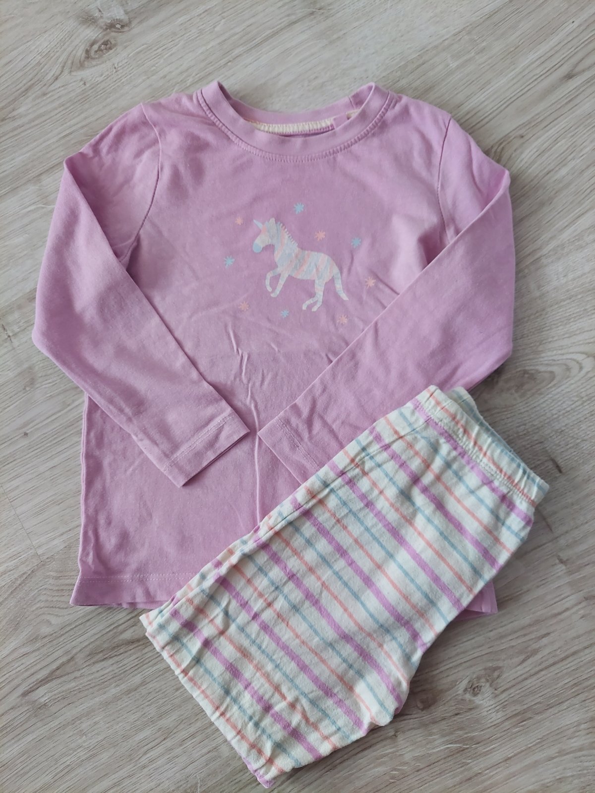 Pyžamko nosila dcera v škôlke, takze je vo veľmi peknom nosenom stave, bez chýb a poškodení.
