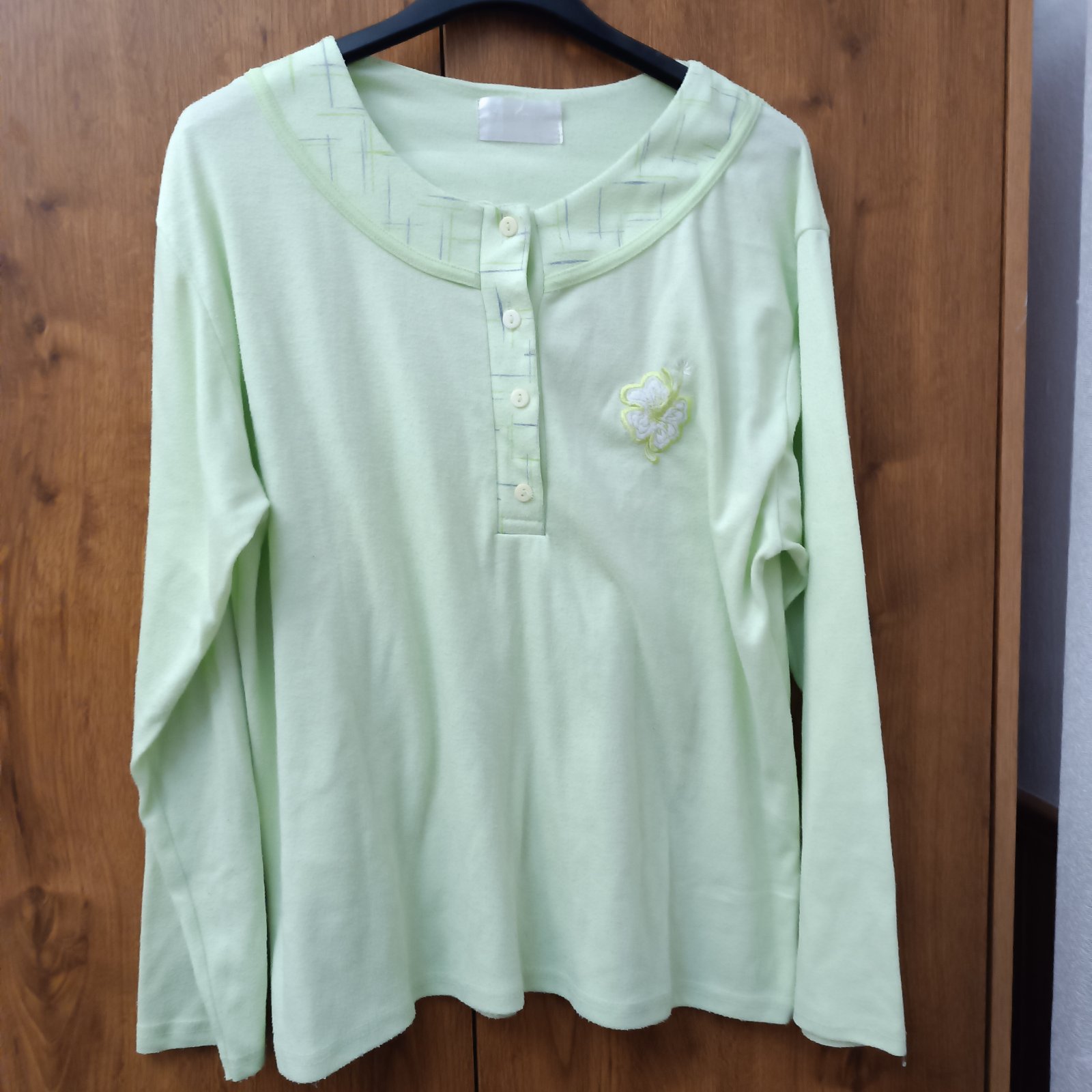 Pyžamo Friends, nohavice a tričko s dlhým rukávom. Mám takmer rovnaké miery cez prsia a cez boky, ale spodok mi nesedí, oproti vrchu je menší. Vrch sedí na L alebo aj XL. Myslím že H&M. Bavlna.