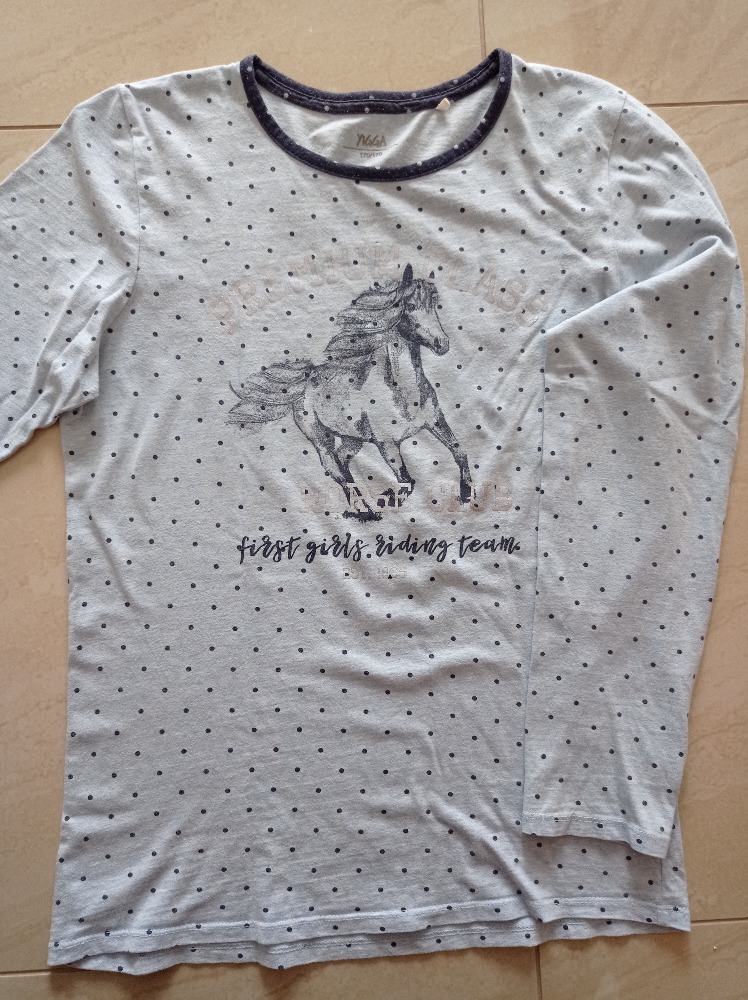 Predám toto dvojdielne pyžamko veľkosti 170/176. Vršok má miery: 63cm dlhé, 47cm široké v oblasti podpazušia, rukáv 46cm od podpazušia, 58cm od ramena a 68cm od krku. Nohavice dlhé 1,06cm, v páse je guma 36-50cm.