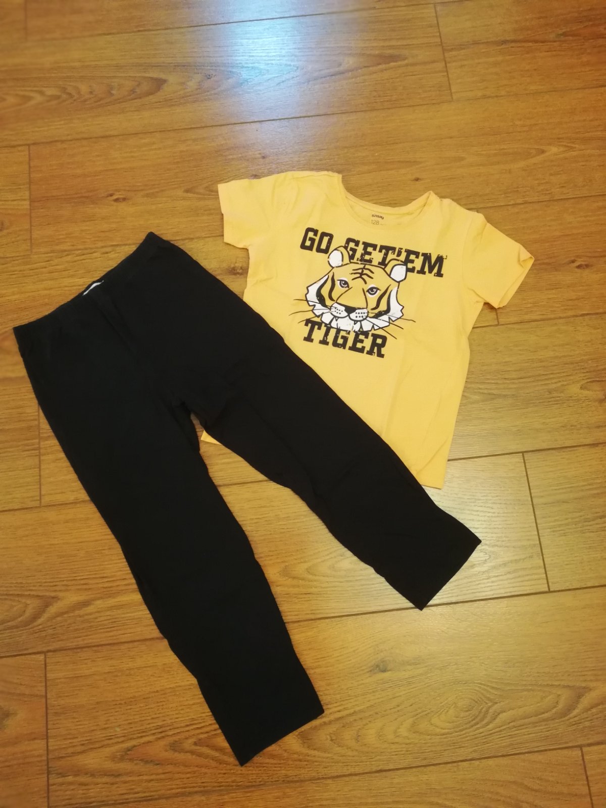 Tricko je oranzove, nohavice cierne. Top stav.