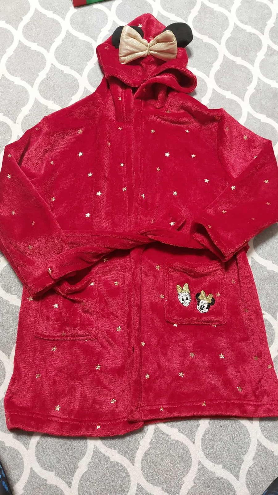Krasny cerveny zupan so zlatymi hviezdickami a maslou na kapucni. Bez flakov a poskodeni. Dlzka 68cm