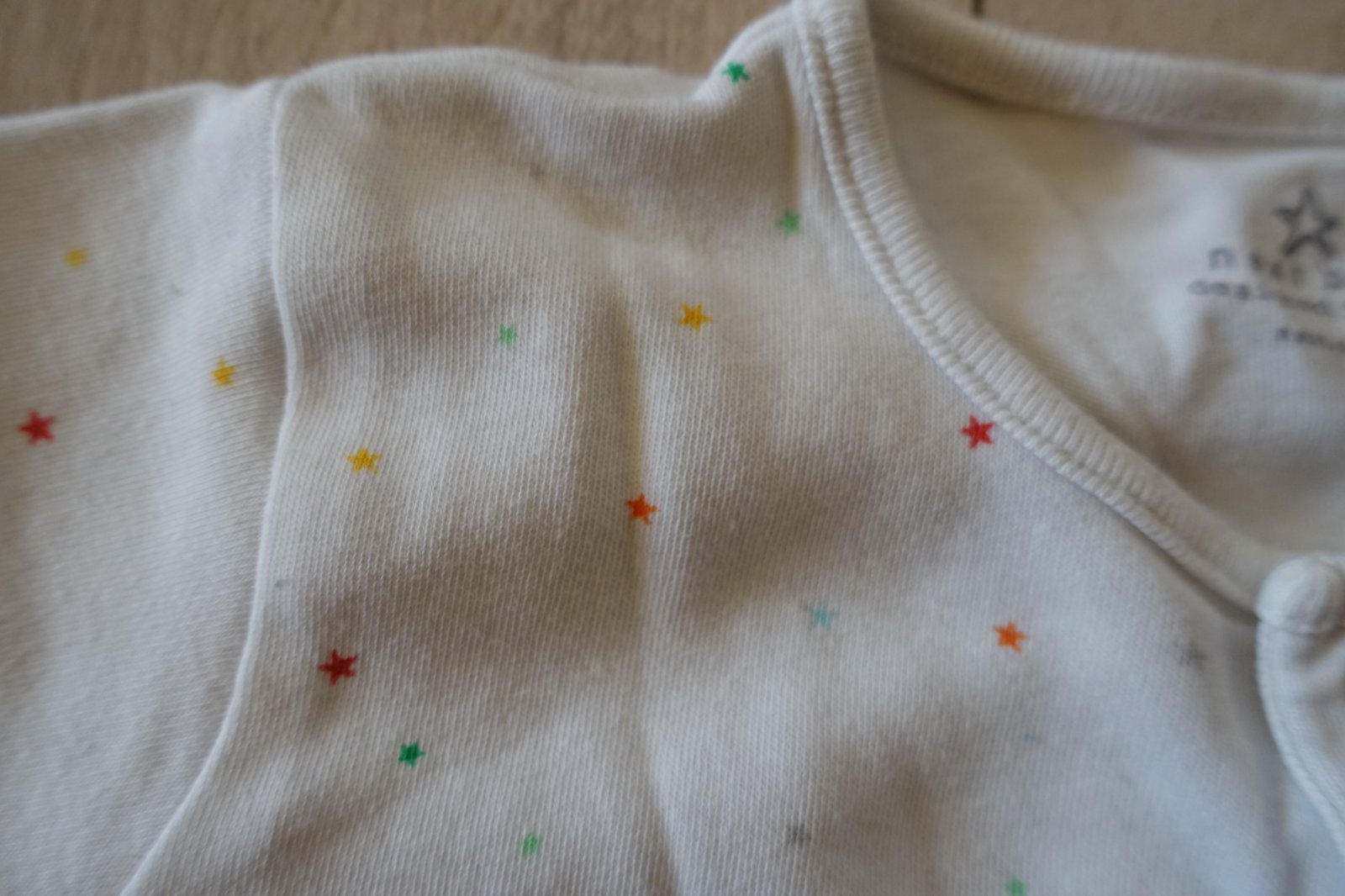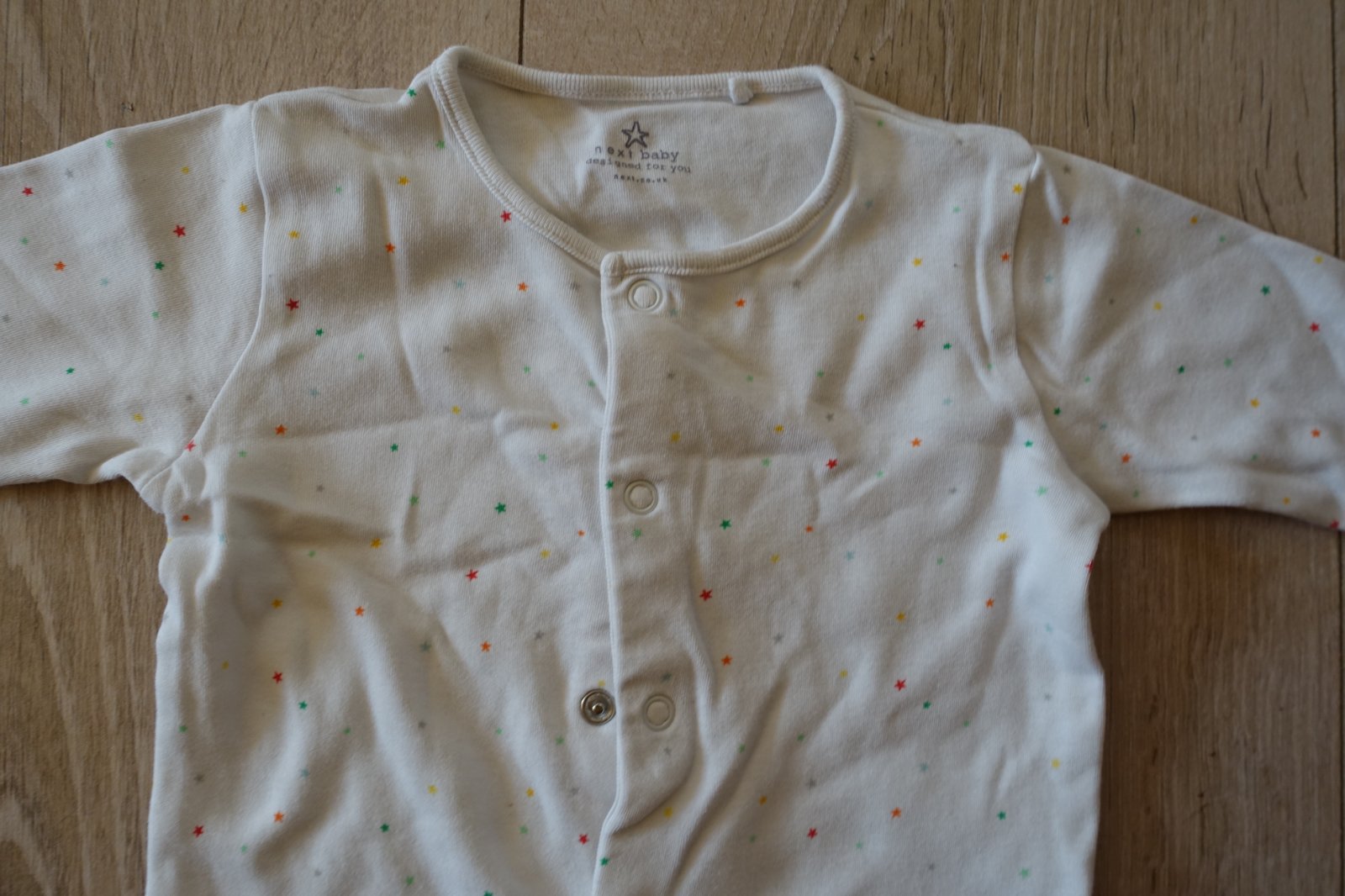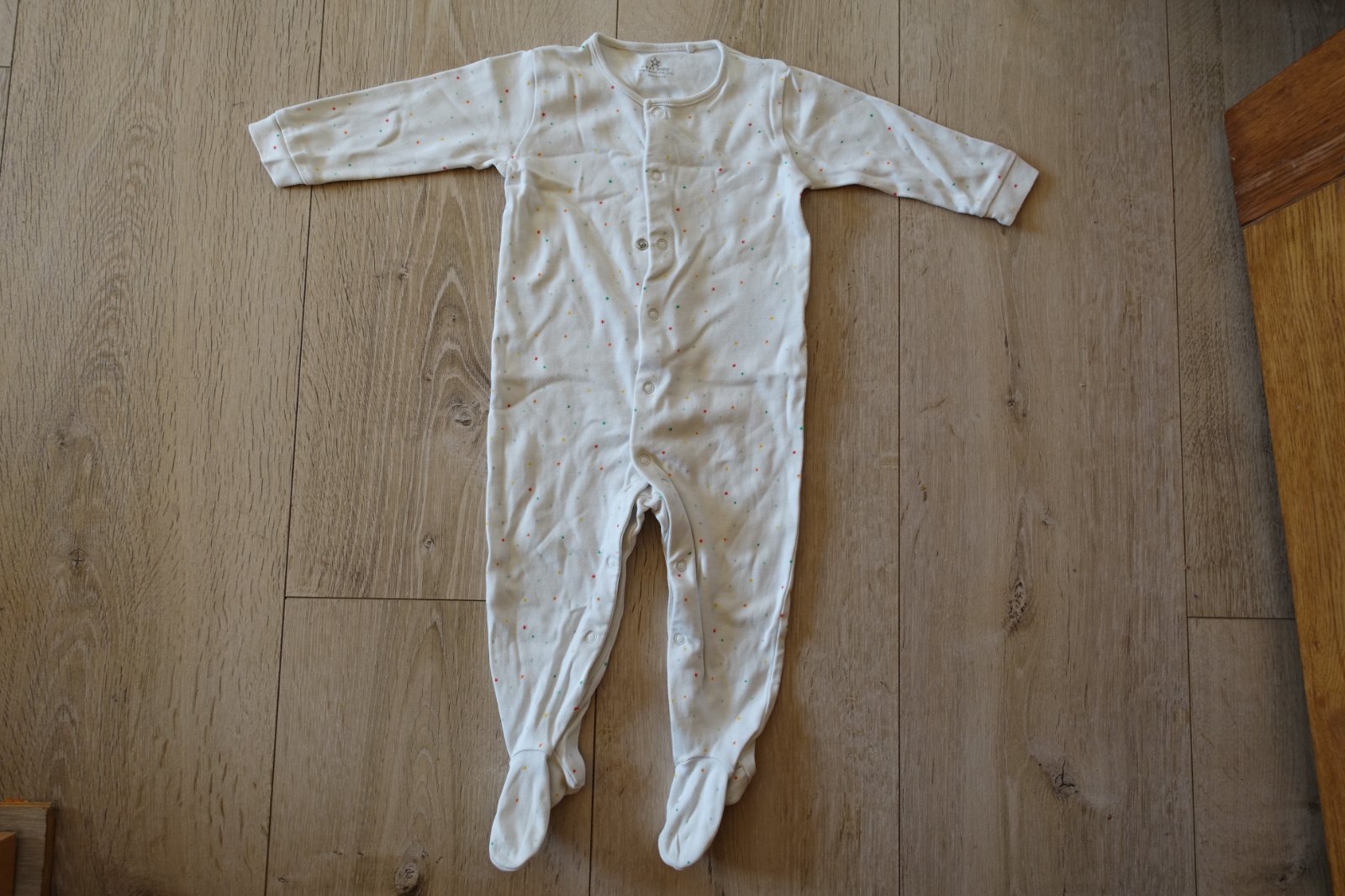 Predám bavlnený overalík s hviezdičkami vo veľkosti 80 (9-12 mesiacov). Overalík bol nosený, je vhodný už len pre nenáročnú mamičku. Trolilinka sa už začína robiť chĺpoček z prania pri naklonení, ale nie je žmolkavý. Ponosiť sa určite ešte dá. Je mäkký a príjemný na nosenie. Dĺžka od pliecka po pätu je 64 cm a od pliecka po rozkrok 43 cm. (V06)