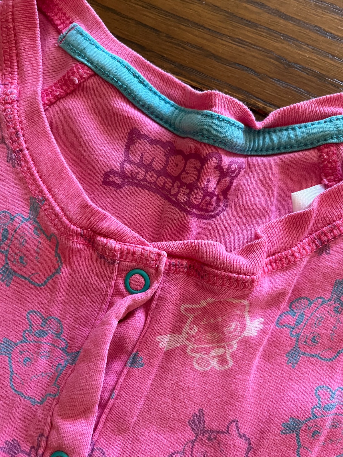 Super stav, bez fľakov, žmolkov či poškodenia. Bavlnené pyžamko s celoplošným motívom Moshi Monsters, super kvalita materiálu a strihu, výborne vyzerá oblečené.