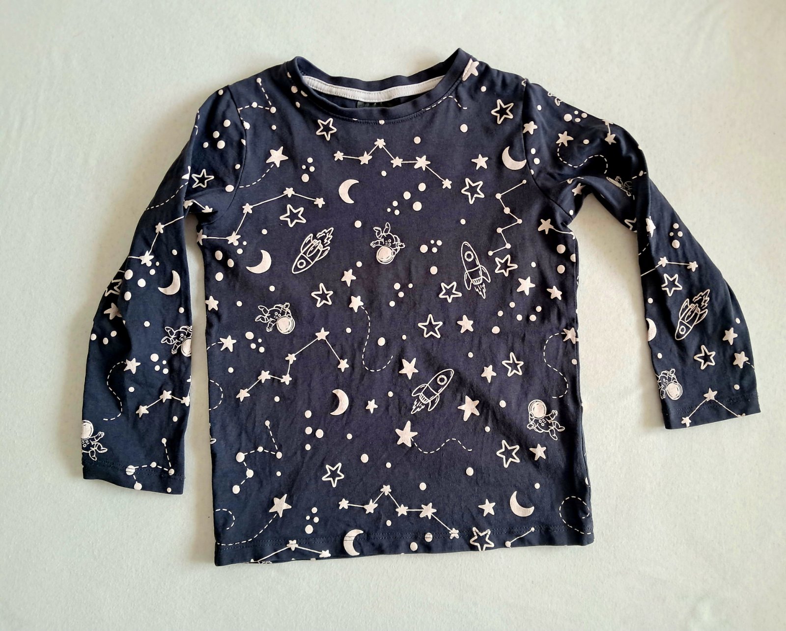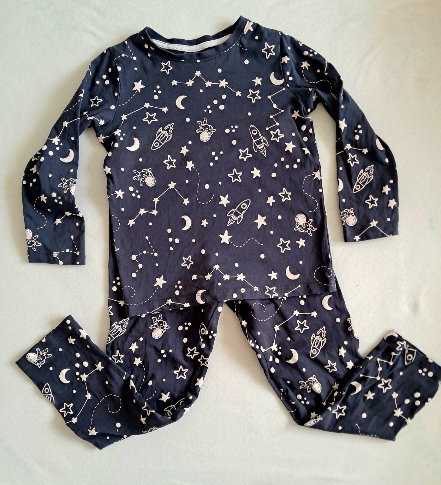 Dvojdielne pyzamko znacky H&M. Velkost je 110/116. Bolo nosene len v skolke a to doslova parkrat. Syn z neho velmi rychlo vyrastol. Bez poskodenia. V ponuke aj autickove pyzamko rovnakej znacky a velkosti v top stave.
